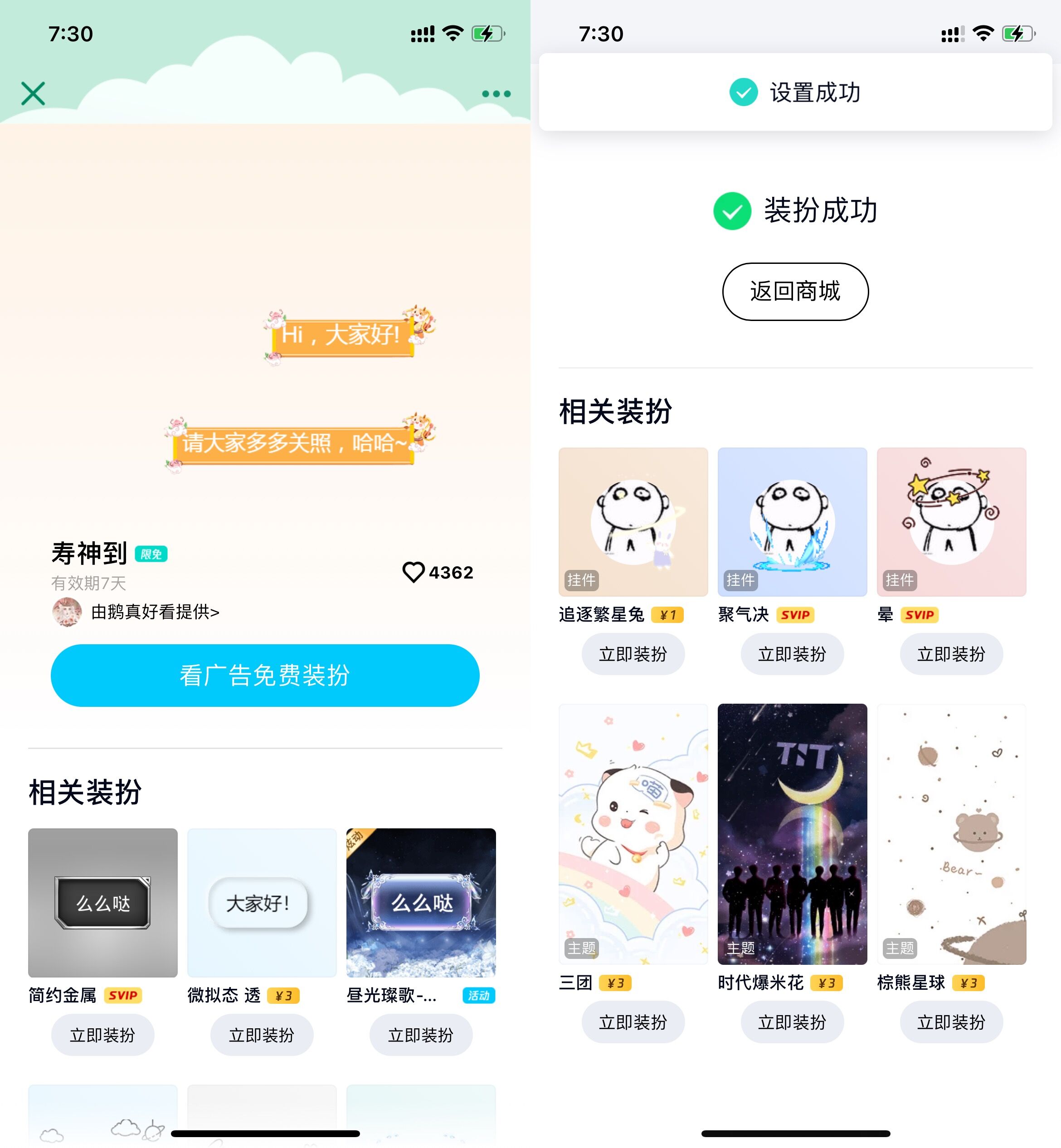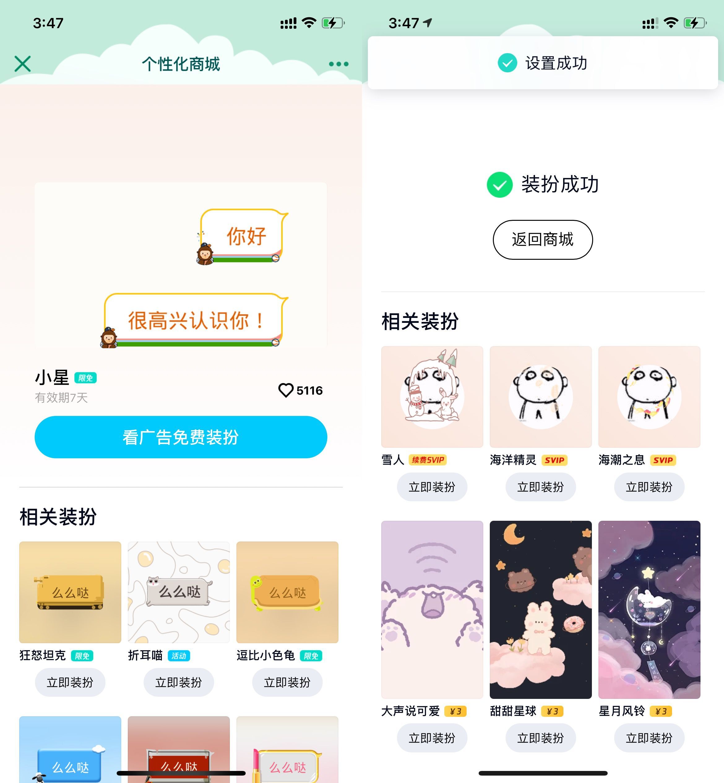 【免费设置俩款可爱挂件】“硬汉小星”“酣睡小星”打开下方链接->点击“立即装扮”即可!