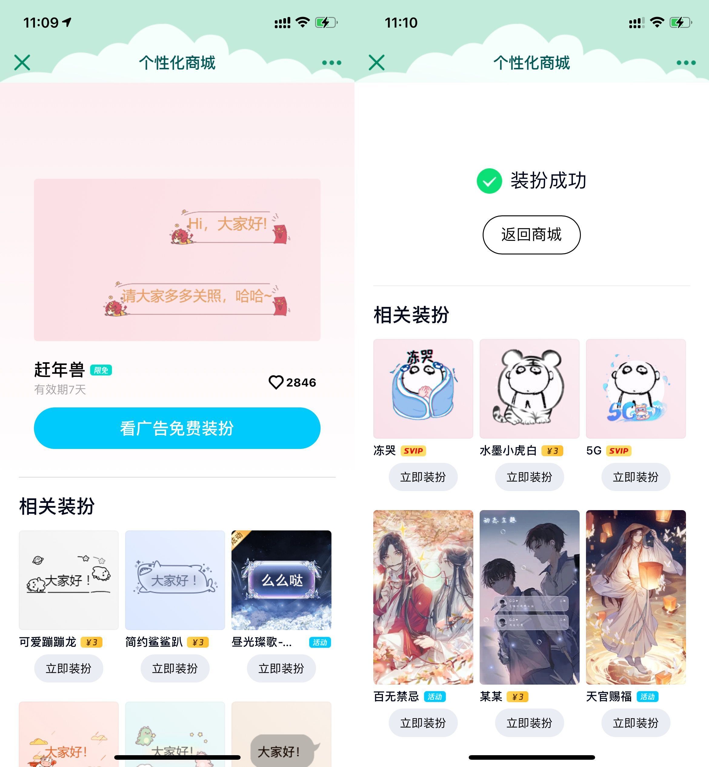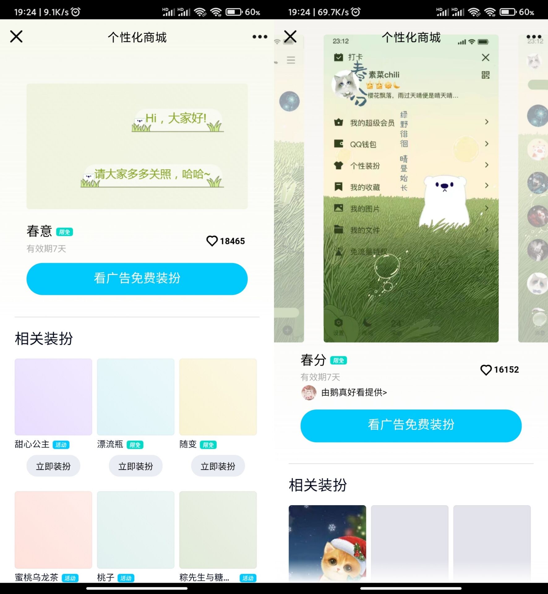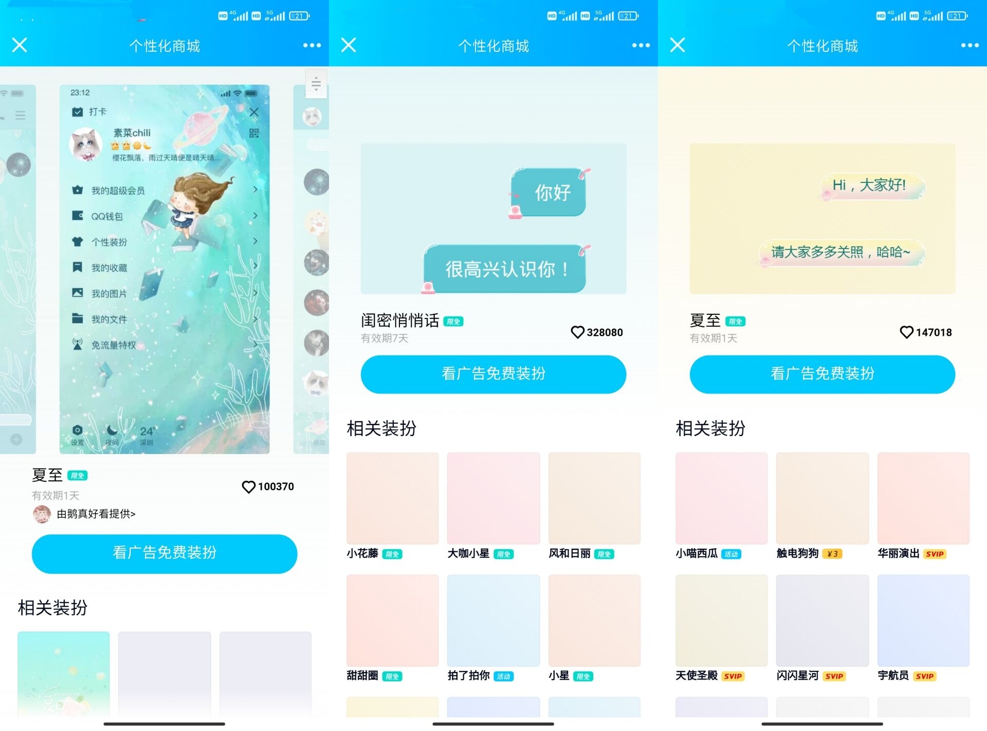 免费设置QQ“少女情绪”气泡->打开看个广告即可装扮->换一种不一样的好心情!