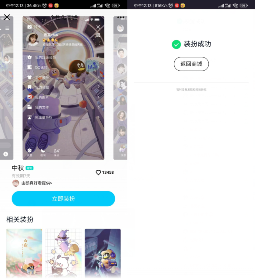 QQ最新限免中秋主题->打开点击即可设置->换一种好心情