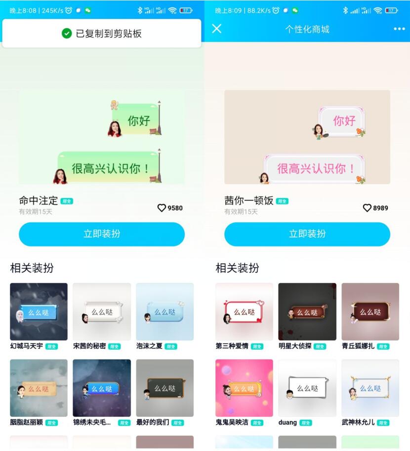 最新限免QQ气泡分享->“命中注定”"茜你一顿饭“打开链接即可设置->还挺好看的哈!