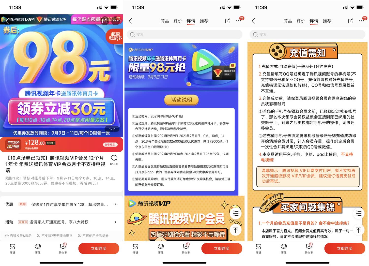 京东限时98开一年腾讯视频会员