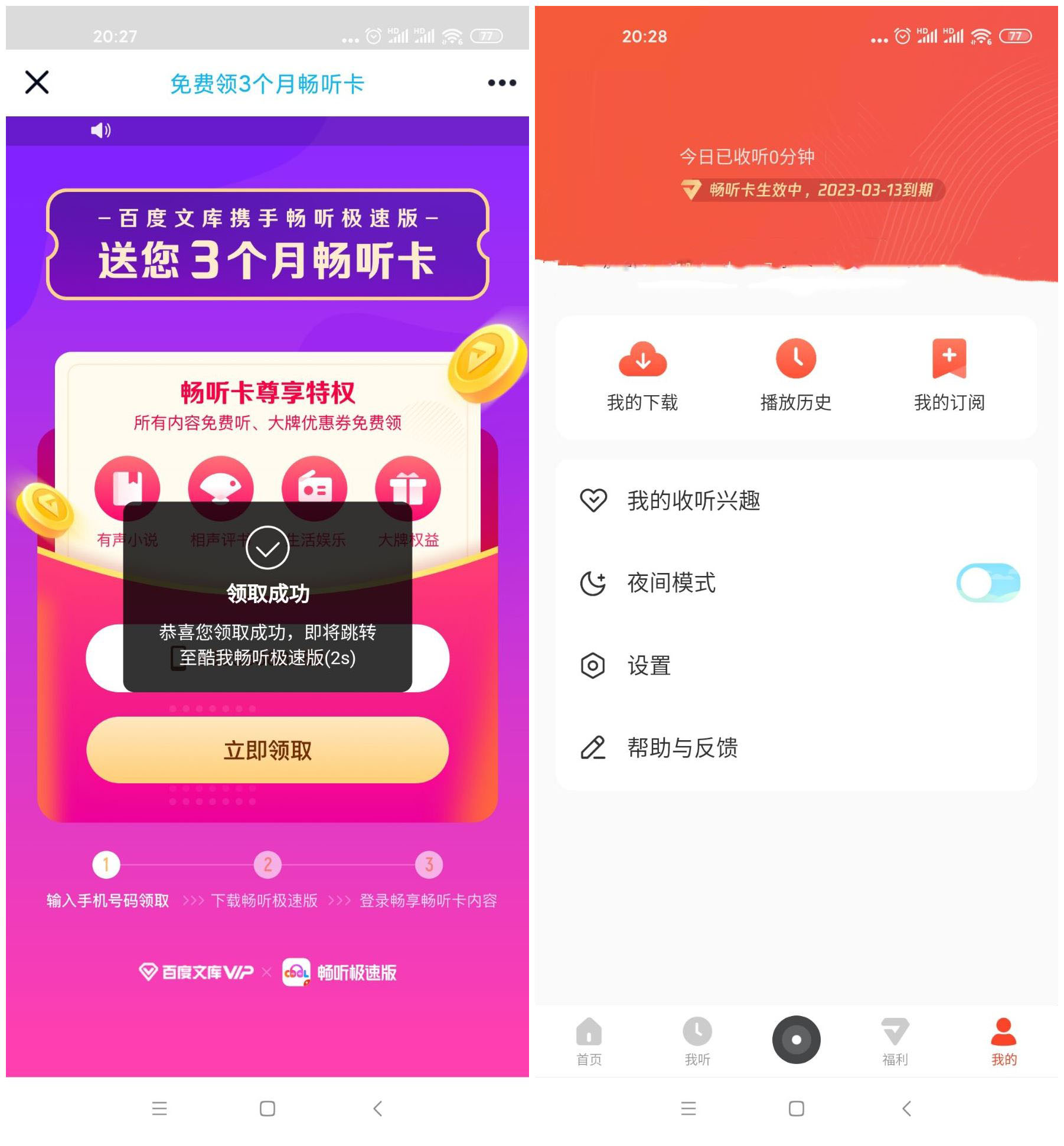 就是原来的酷我畅听极速版!精简版本,拥有着海量免费音频电台资源!打开地址依次领取即可!
