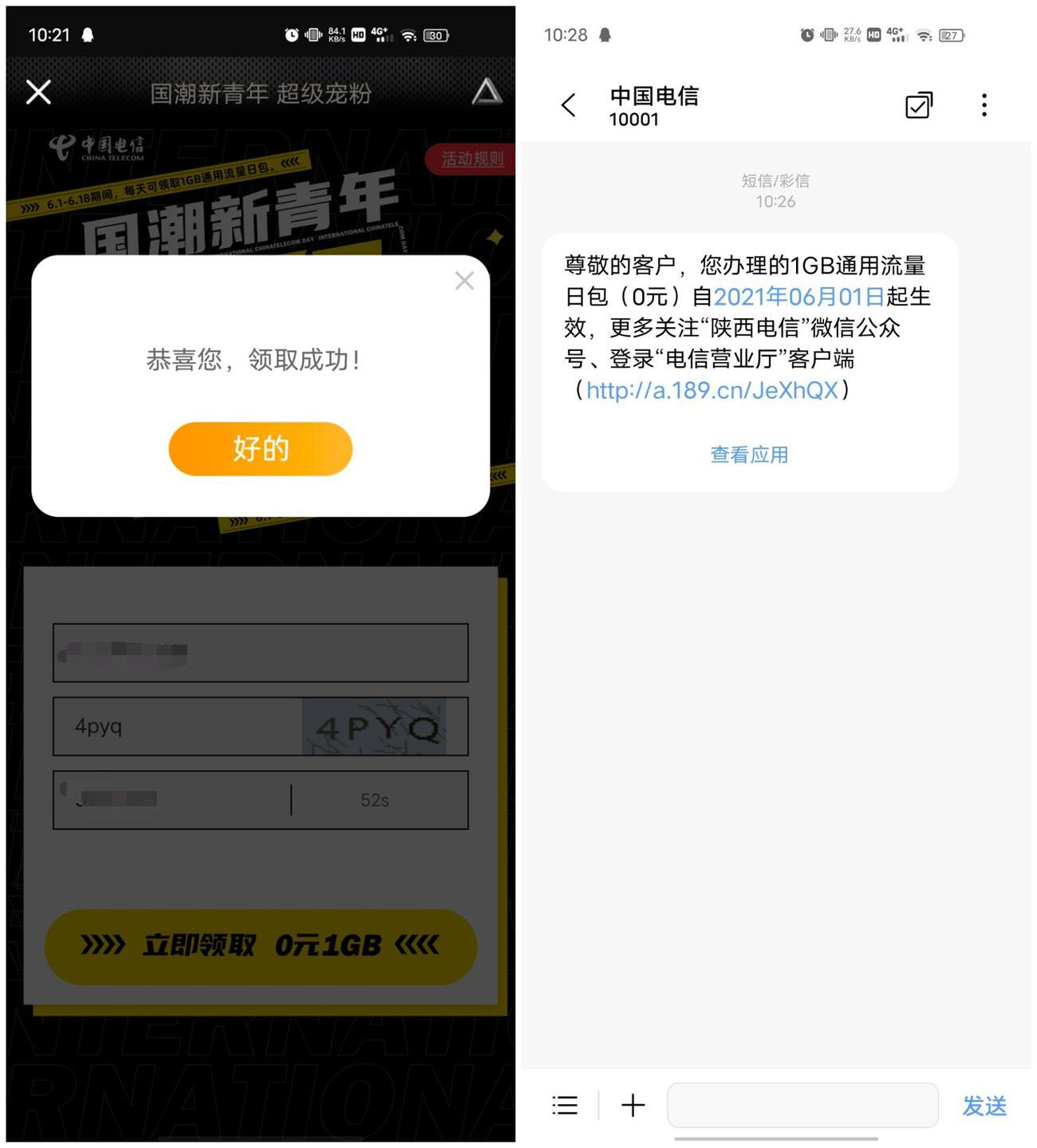 全国电信每天领1G流量日包