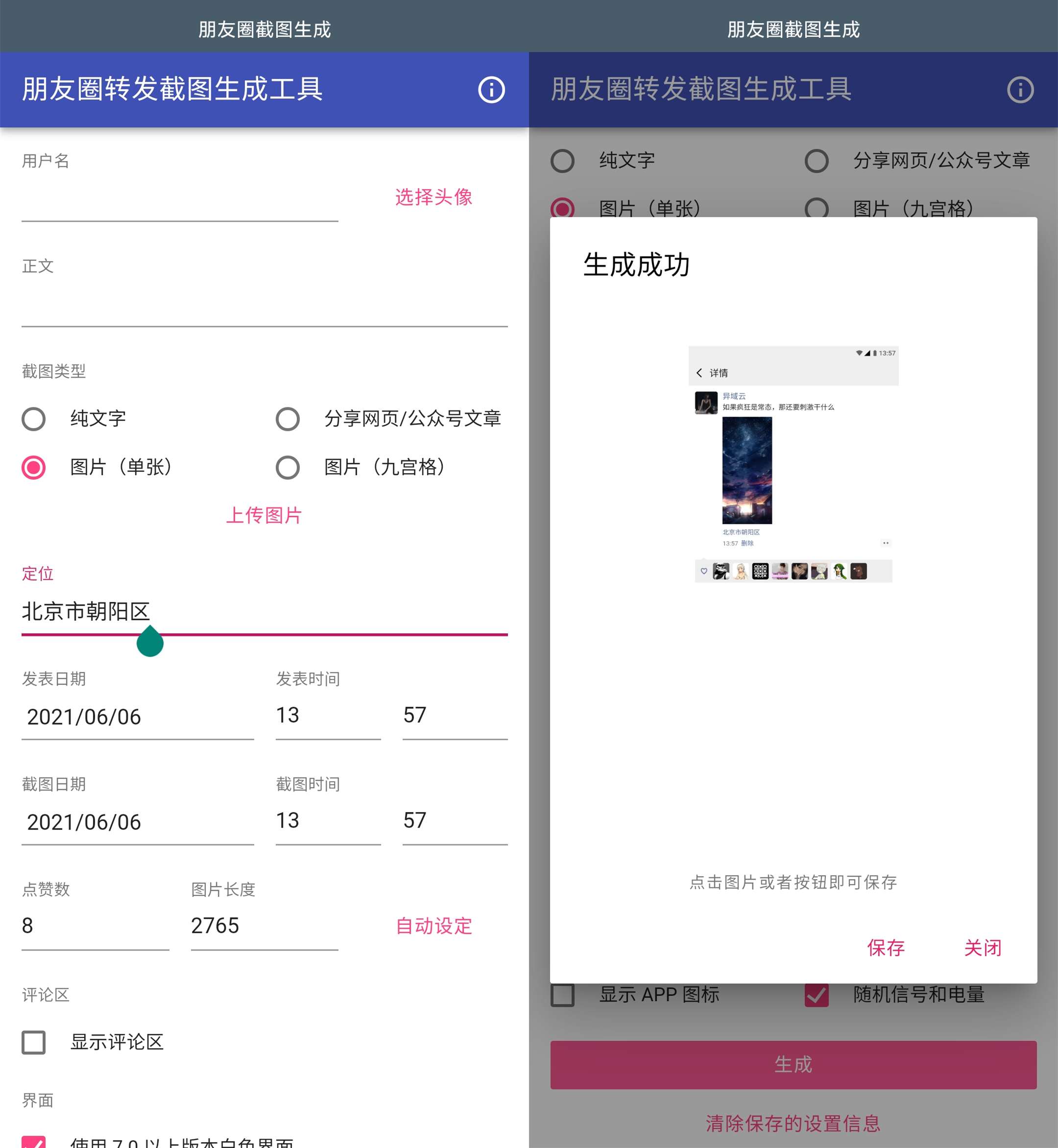 朋友圈截图生成App支持一键生成超牛X朋友圈截图,并且内容支持自定义修改,可用于个人应付各类强制要求转发朋友圈的情形,请勿批量生成截图或将截图用于造谣诽谤、微商宣传等非法或令人反感的用途。