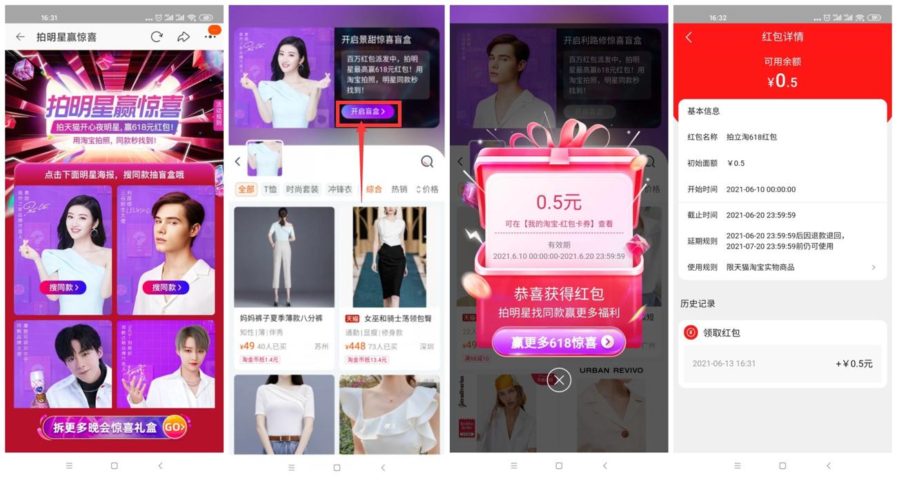 1、打开手机淘宝->首页->左上角扫码进入活动随便点