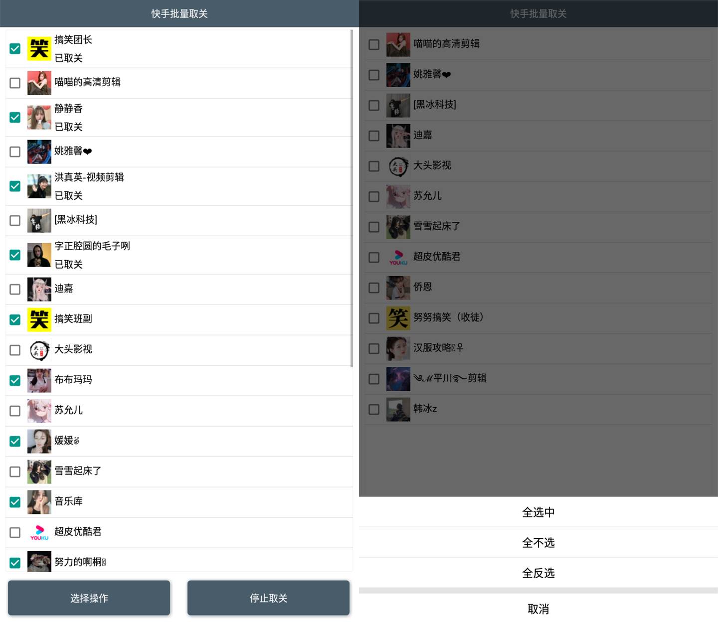 快手关注的人太多了想取消关注一个一个点太累怎么办?软件支持一键批量取关和自定义取关,快速帮你取消关注解放你的双手!