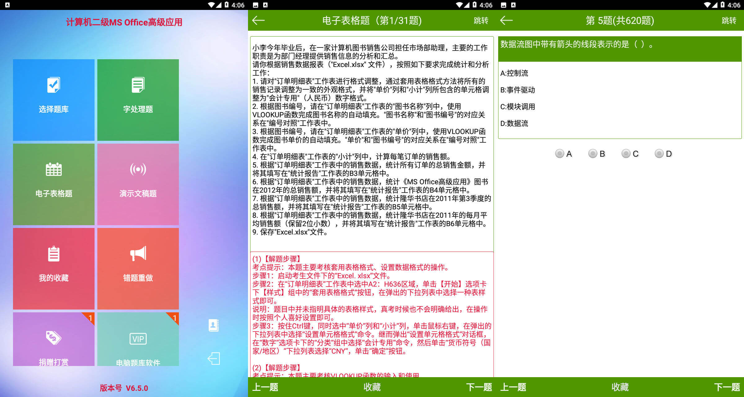 其中选择题320题,字处理题、电子表格题、演示文稿题共69套。题库实现了考点和重点全覆盖。
