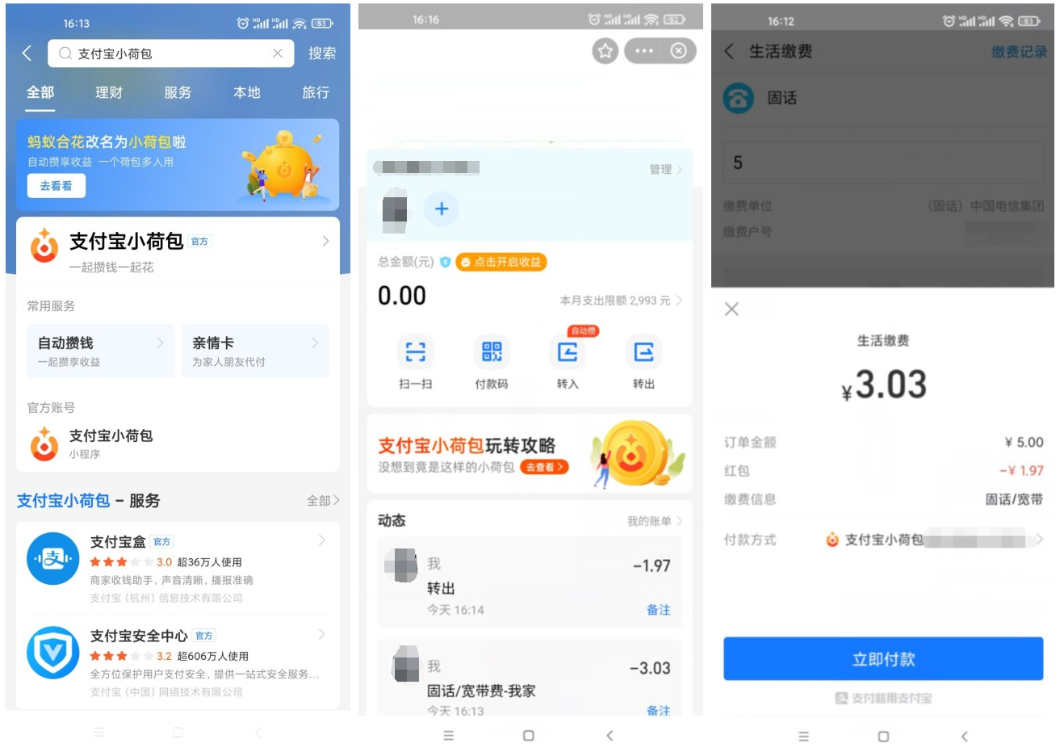 1、支付宝搜索“支付宝小荷包”->点横幅进入开通前会提示送红包(没有就别开)