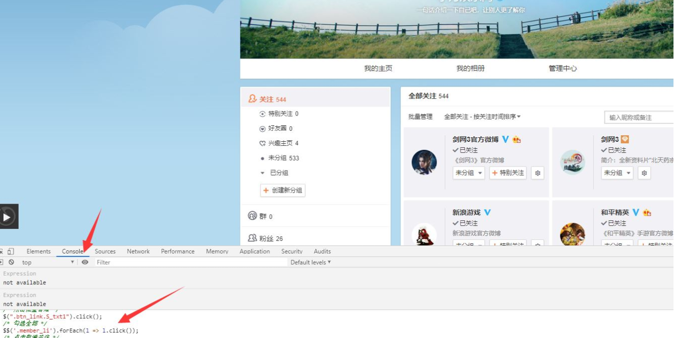 快速批量取消微博关注网页脚本