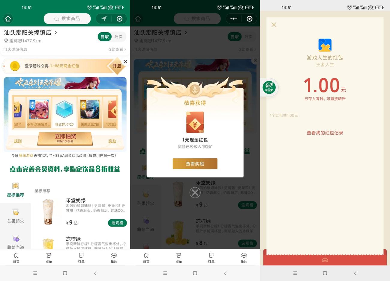 1、微信扫码先抽奖一次->第一次不会中红包->然后会显示登录游戏必得1~88元->就去