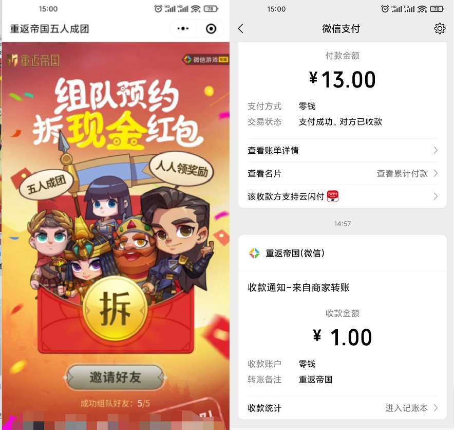 重返帝国组队领1~5元红包秒到