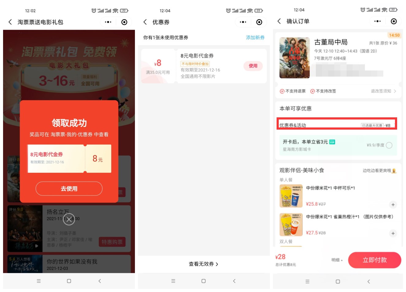 2、刚需的时候可领,周末和朋友一起看电影刚好能省个爆米花钱!
