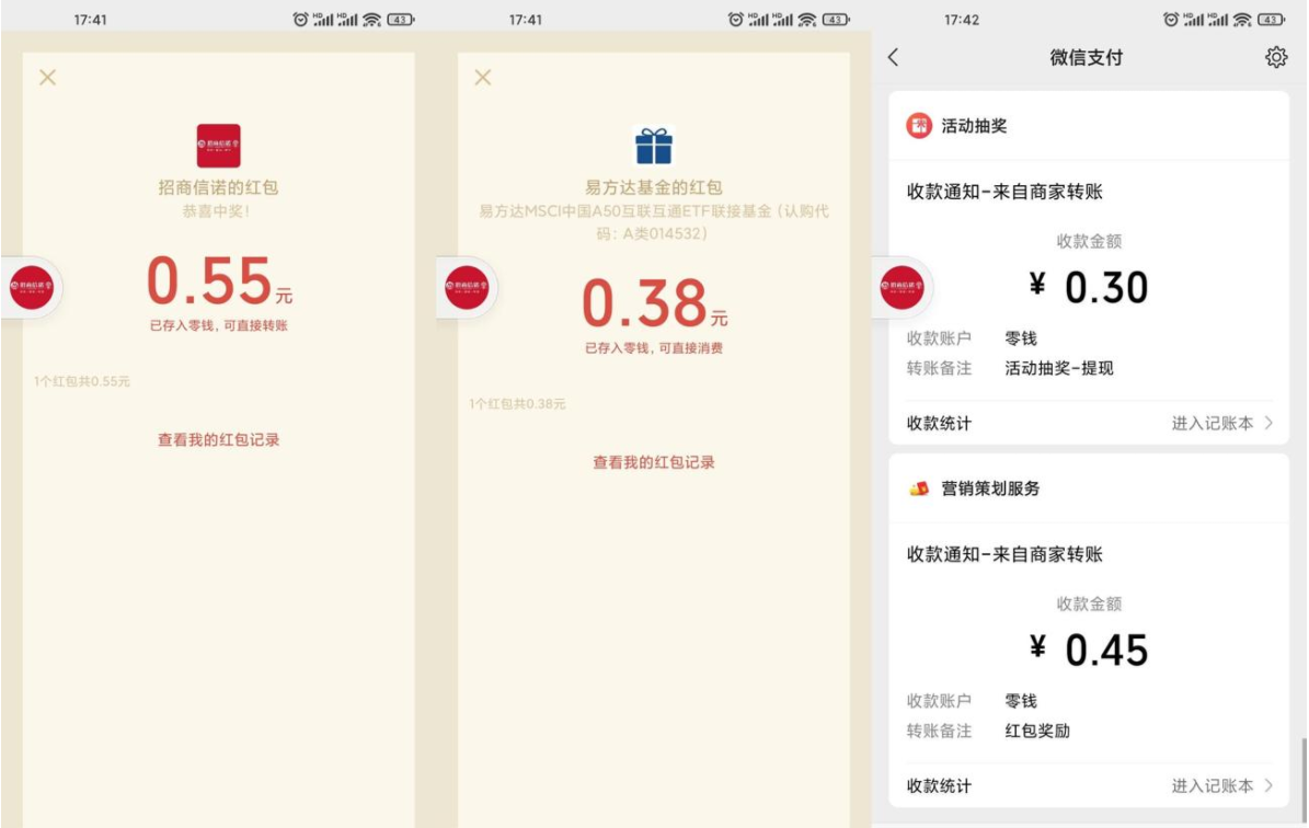 1、微信打开活动1和活动2下拉到底->阅读原文进入抽红包->中了红包几分钟到