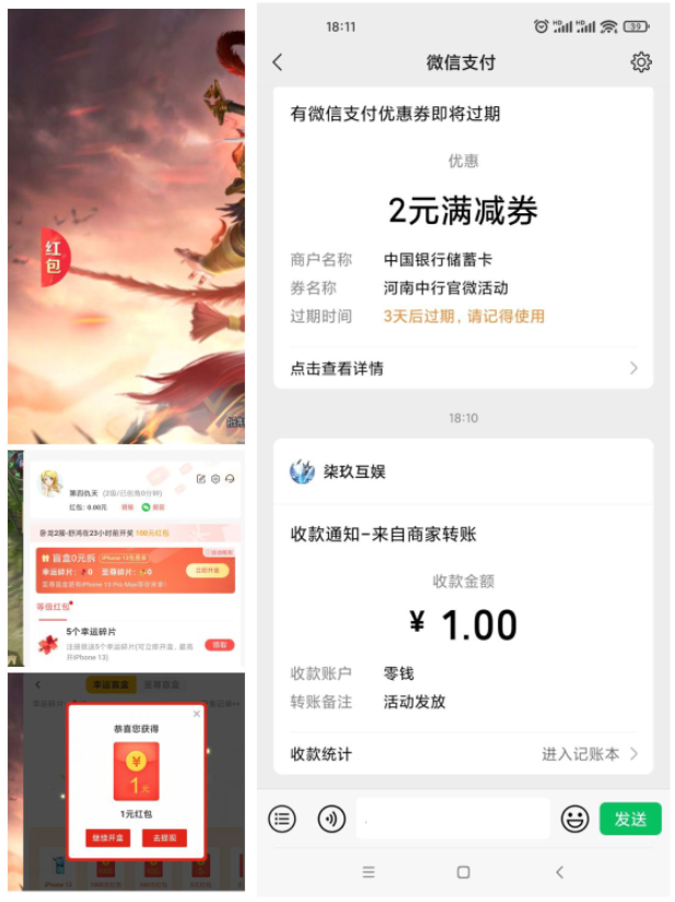 打开地址下载游戏->登录进入大区后->点右边红包->5个幸运碎片领取->立即开盒->抽奖必中1元然后提现几分钟到