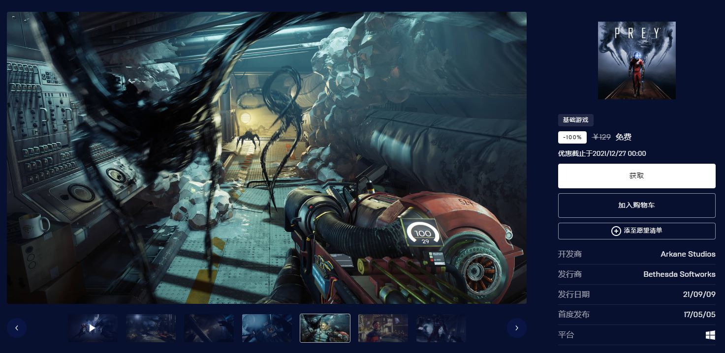 领取地址:https://www.epicgames.com/store/zh-CN/p/prey