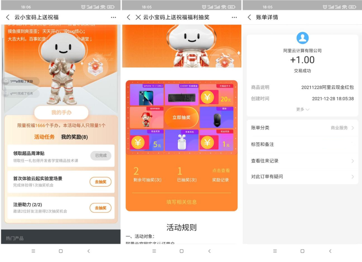 1、打开地址完成任务“首次体验云起实验室场景”->进去开始体验待一下返回就能抽奖