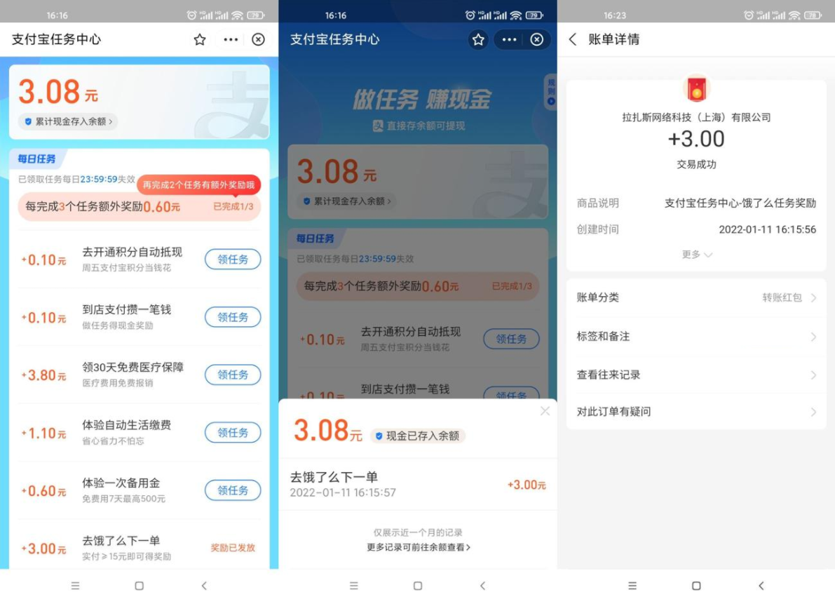 1、支付宝扫码进入->下拉页面看有没显示饿了么或者快递任务->去一下单->如果不需要吃->直接秒取消订单