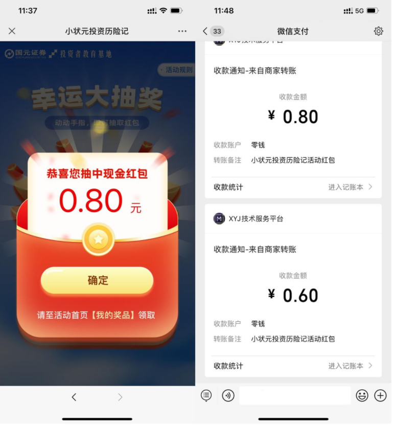 3、首页“活动专区”->小状元历险记->复制兑换码->关注公众号“国元证券”->发送“小状元”兑换红包