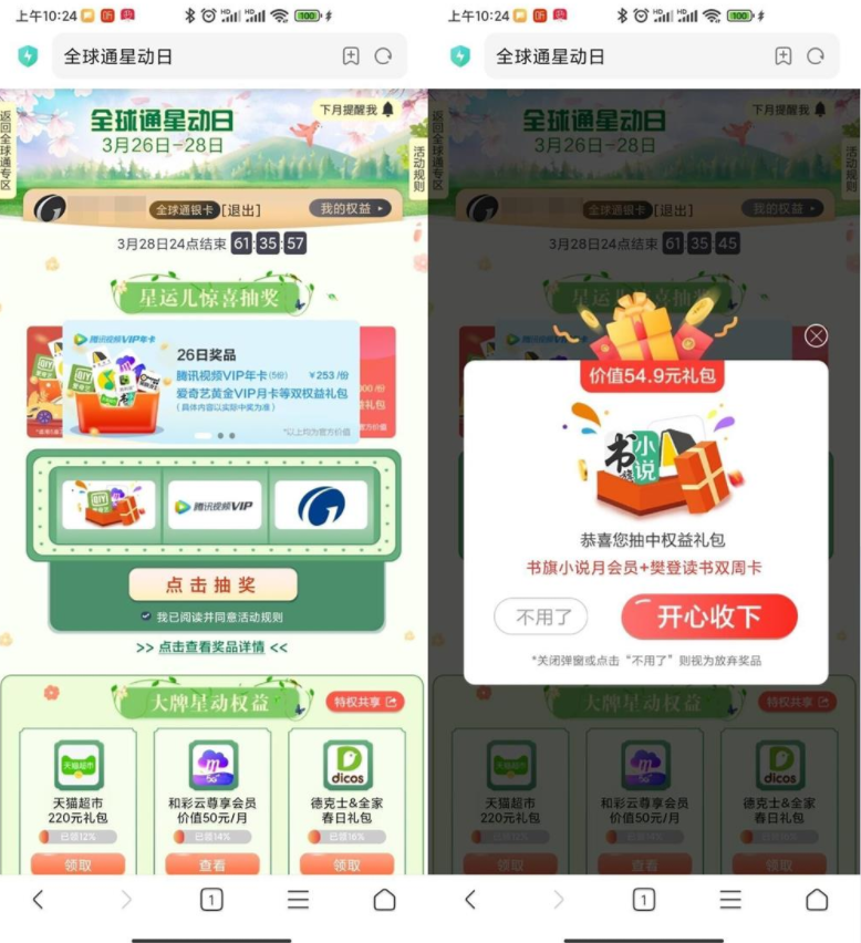 打开活动地址->登录账号->点击抽奖->抽随机会员