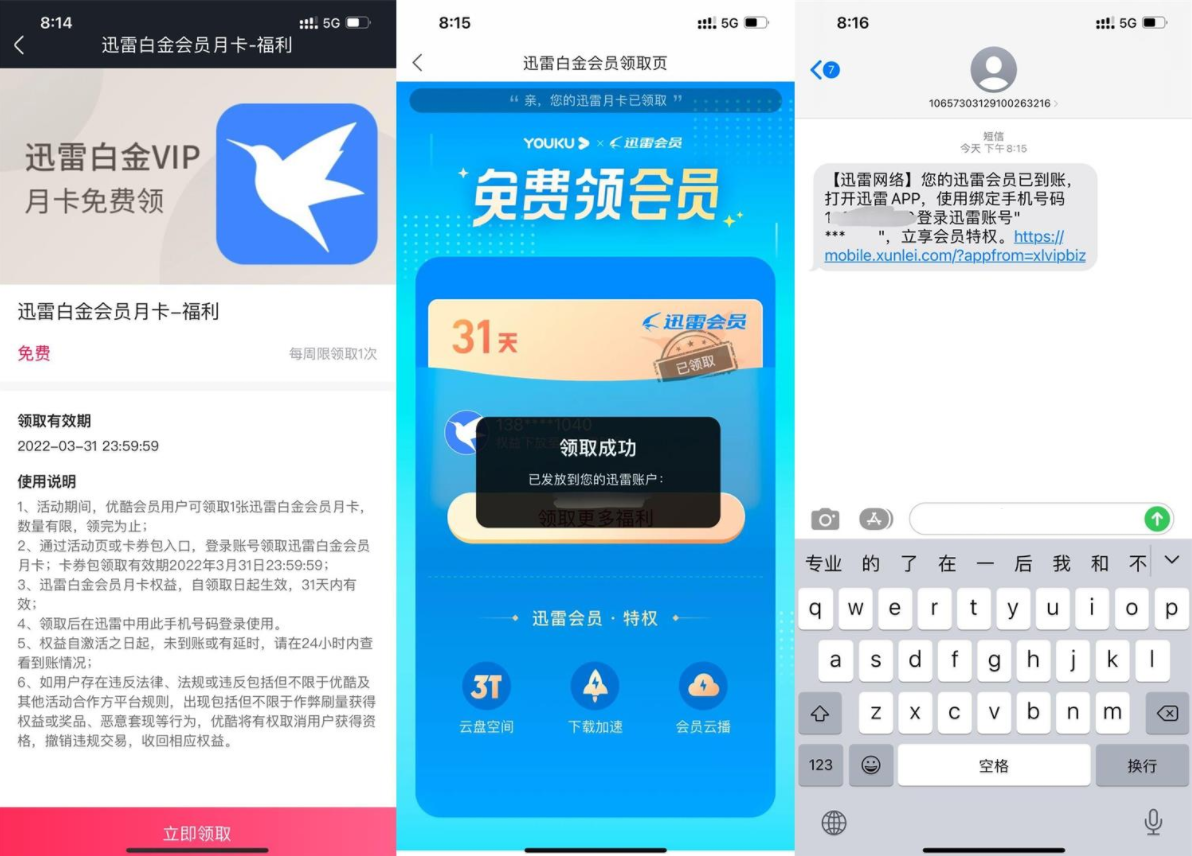 优酷视频APP->我的->右上角扫码->立即领取->根据提示领取到账号秒到