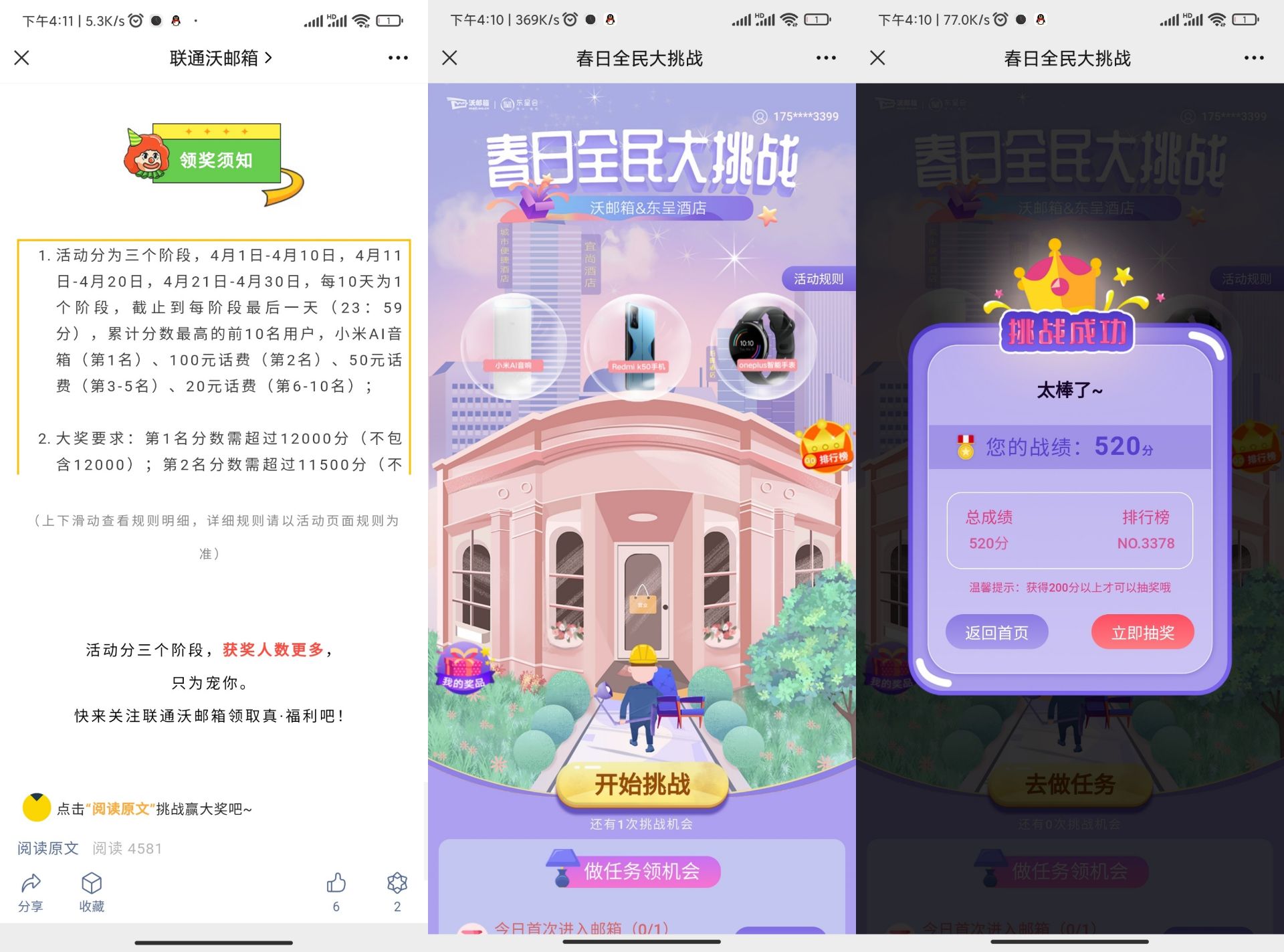 微信打开地址->下拉“阅读原文”->参与游戏->基本必中1元话费->两次机会用完