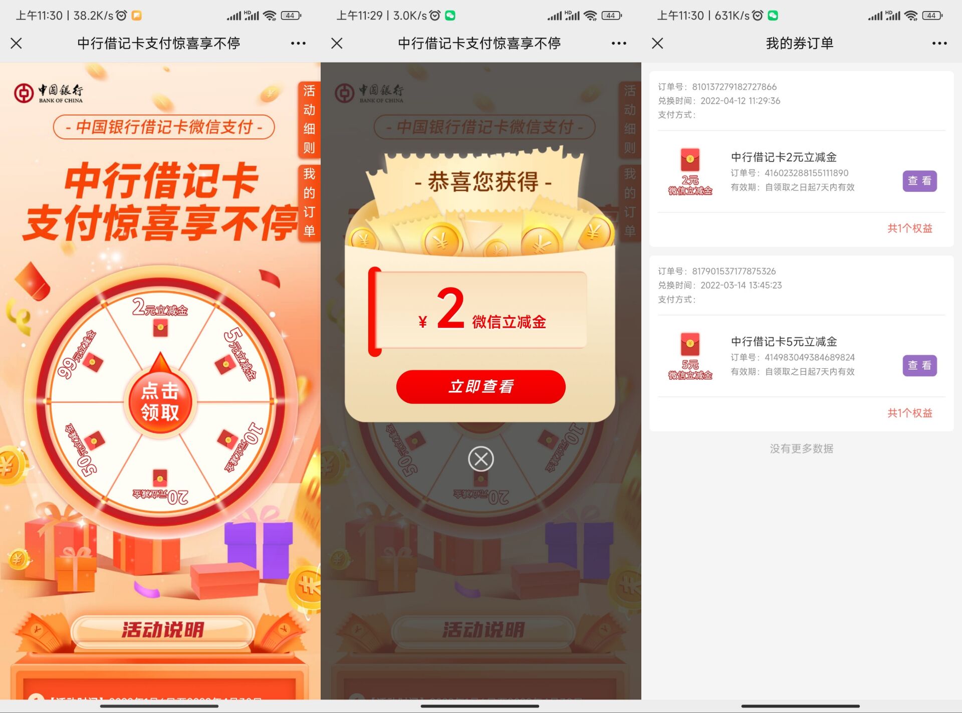 微信打开->点击转盘抽奖->抽中后自动到卡包->立减金满10元可用