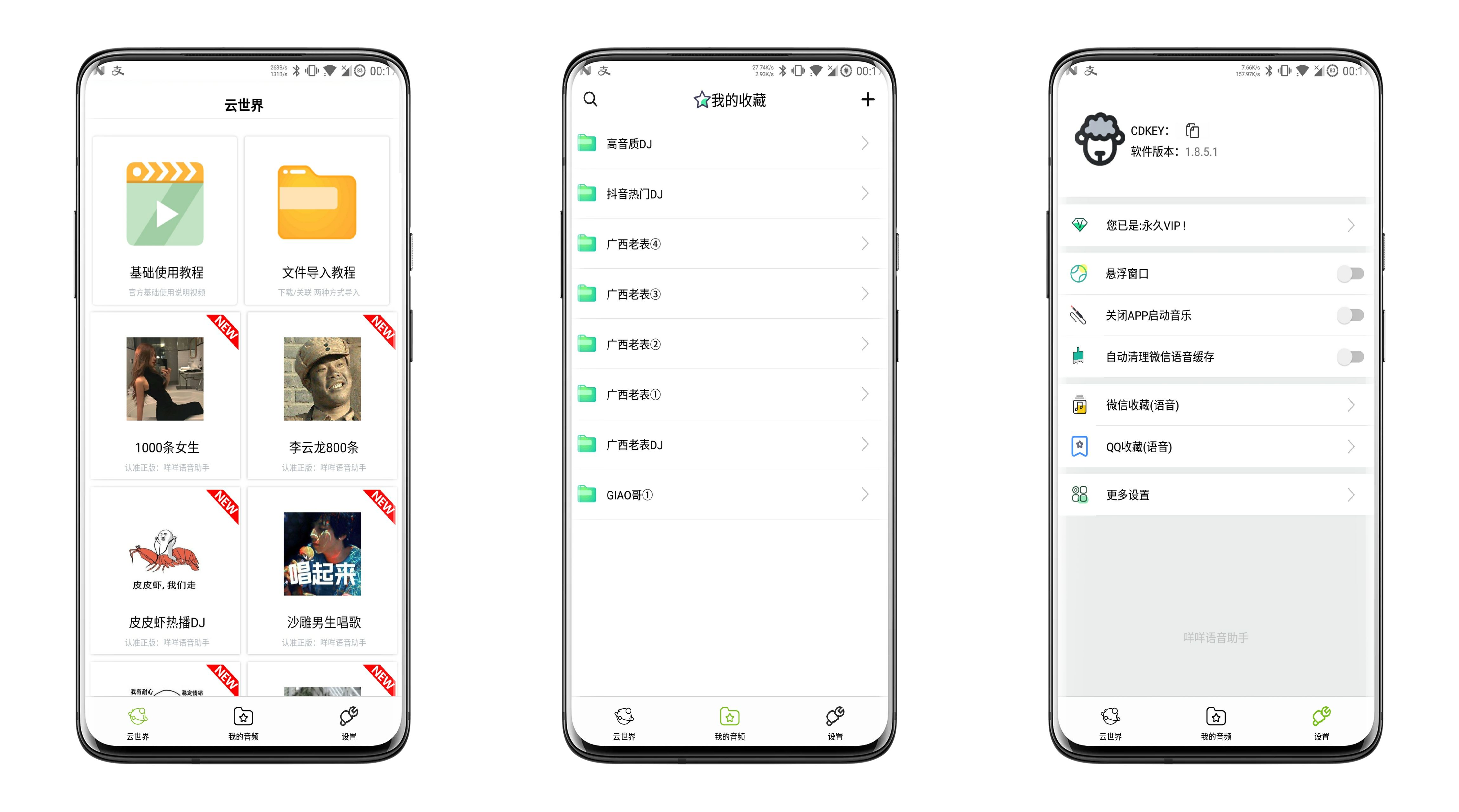 咩咩语音助手app是一款能够让用户在社交聊天中、游戏中、直播中直接进行变声的语音包软件,其中内置了一千条女生、李云龙、皮皮虾热播DJ、沙雕男生唱歌、骂人、广西仔、郭老师、周星驰、王者荣耀等超多丰富、有趣的语音素材,可以很好的满足用户们在不同场合下的使用需求,非常有趣。而且咩咩语音助手app还会持续实时为用户们更新更多的语言包进行使用,并遇到自己喜欢的语音包还能直接进行收藏,然后将其进行创建列表并进行分类,从而即可轻轻松松的寻找到自己需要使用的素材,十分方便。(直装即是会员)