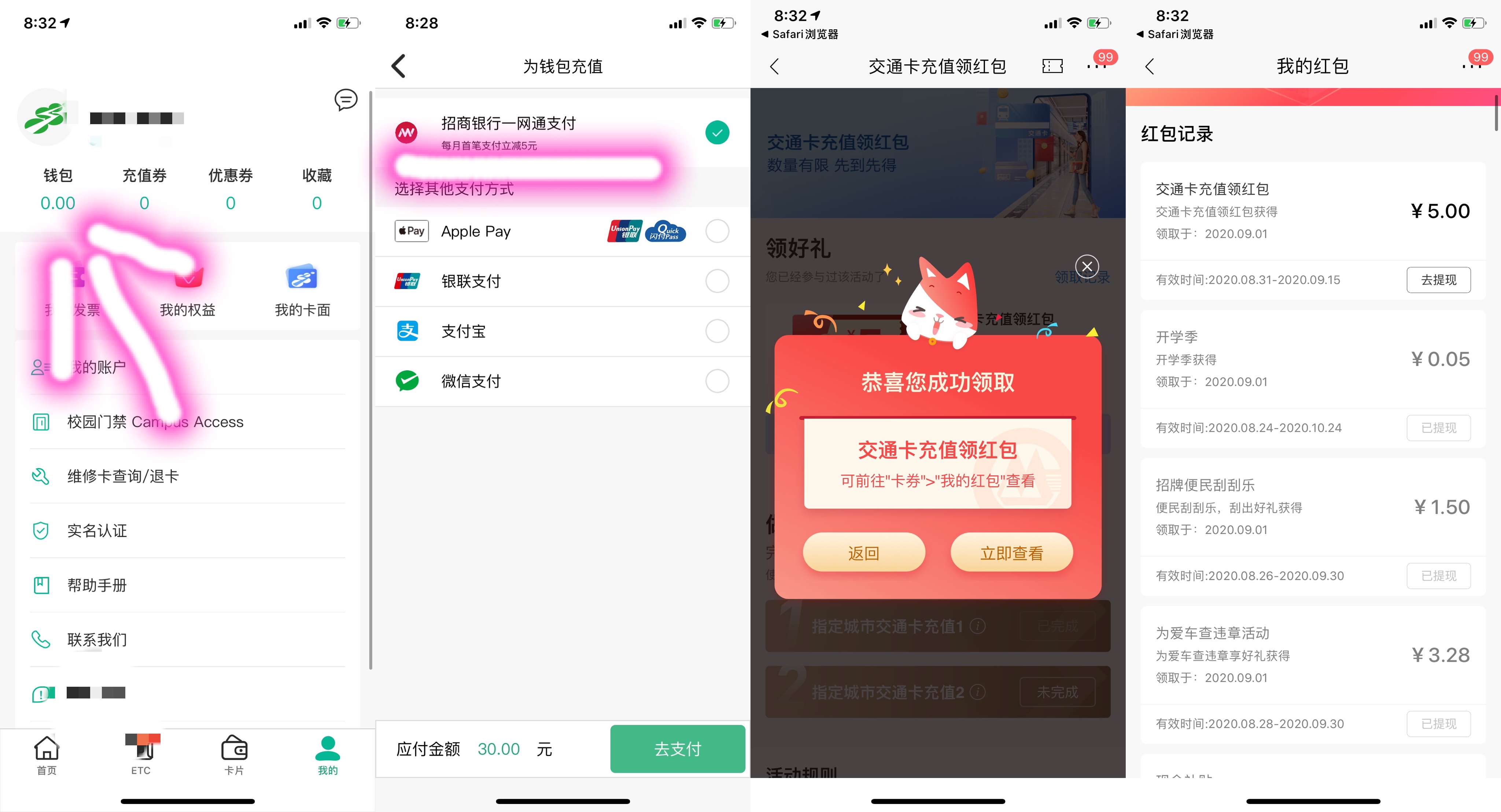 招行交通卡充值领取3元红包