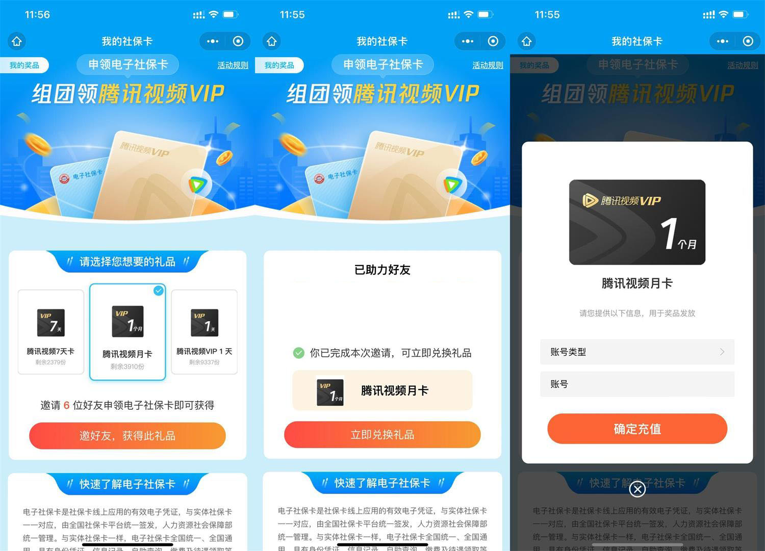 社保卡邀请好友领腾讯视频会员