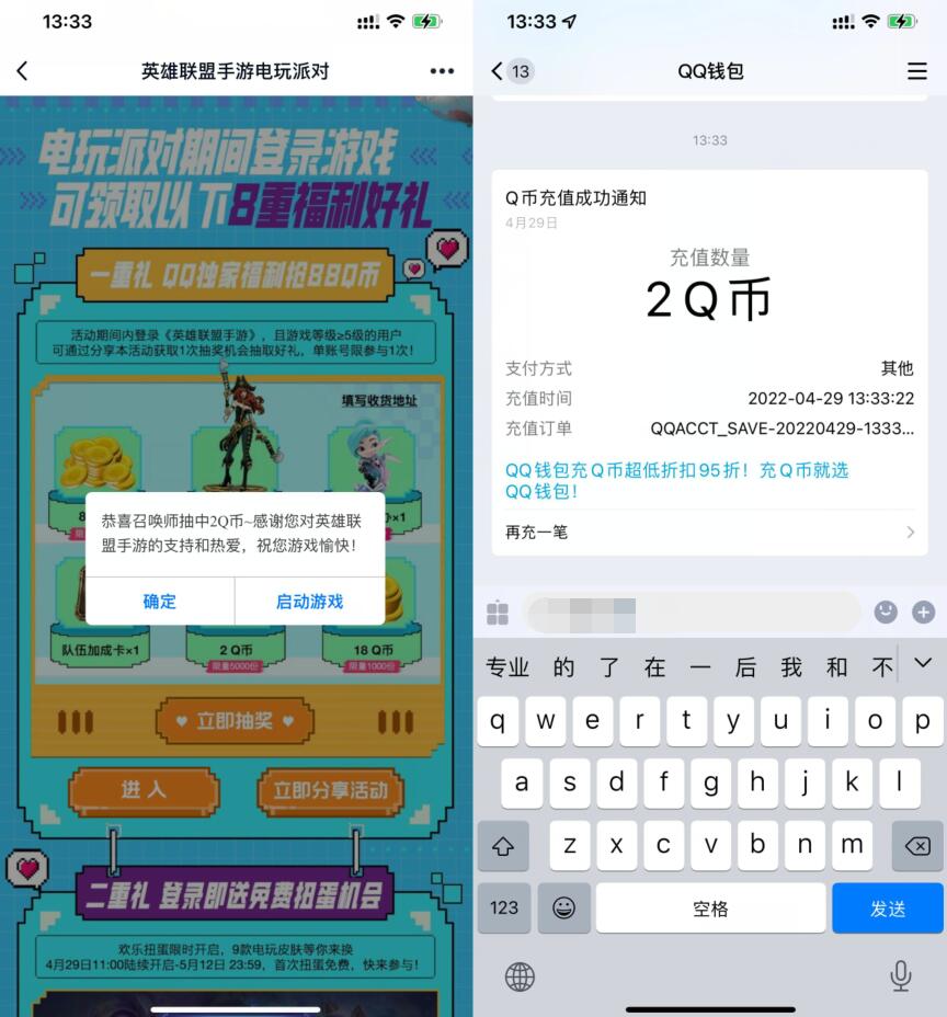 手机QQ打开->登陆游戏->返回分享页面->直接抽Q币->大概率非必中