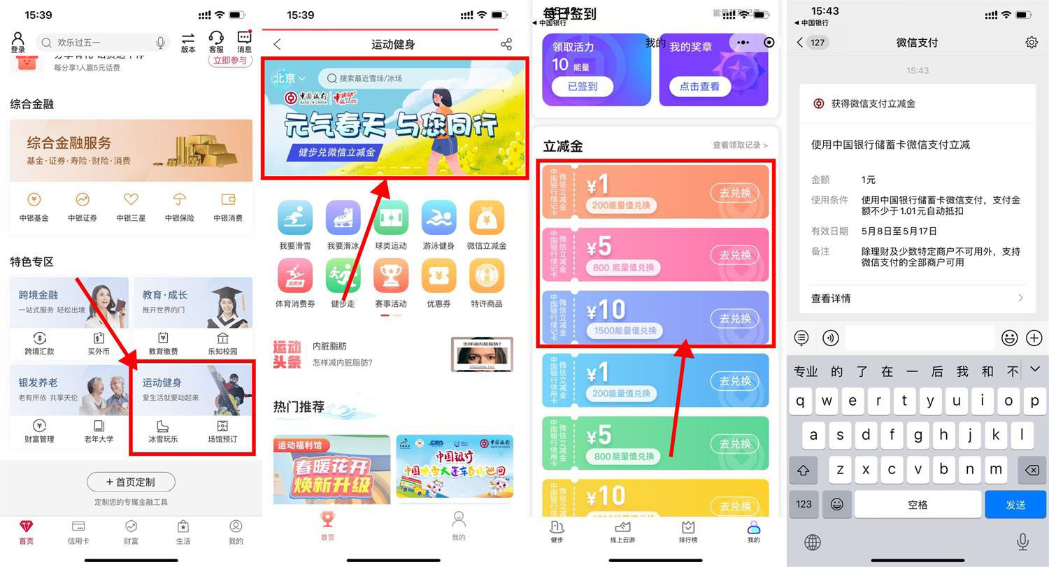 1、中国银行APP->首页下拉->运动健身->横幅“元气春天 与你同行”->马上参与->跳转到微信小程序