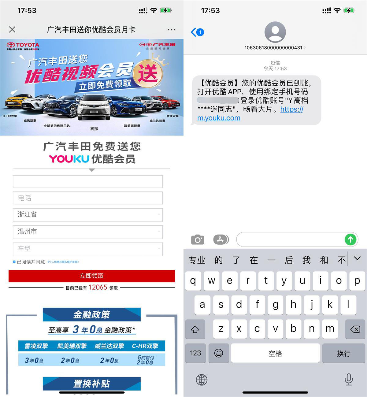 手机打开地址->手机号填自己的->其他乱填即可->直接领取优酷会员月卡秒到