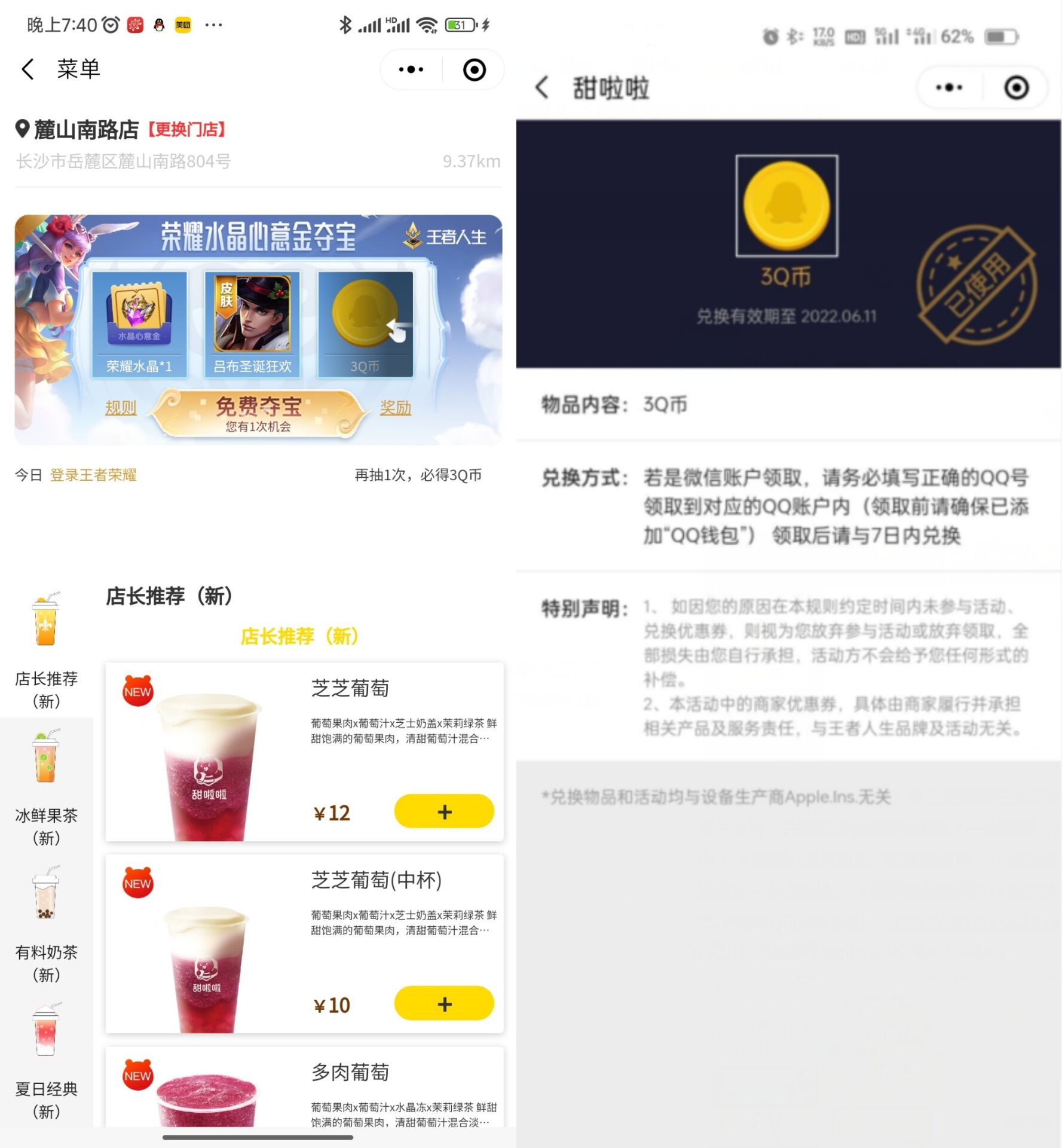 1、先登陆王者荣耀微信区(一定要登 不然不中)->微信小程序搜索“甜啦啦点单”->自助点单
