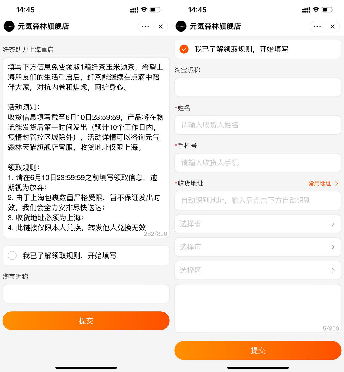 手机淘宝APP扫码->填写地址10天内发货->实物是1箱纤茶玉米须茶