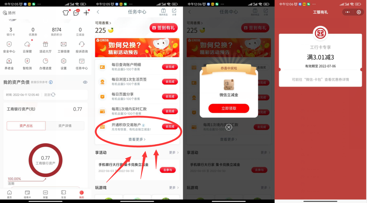 1、工商银行APP->我的->任务中心->开通积存交易账户->我的持仓->开通后右下角“立即抽奖”