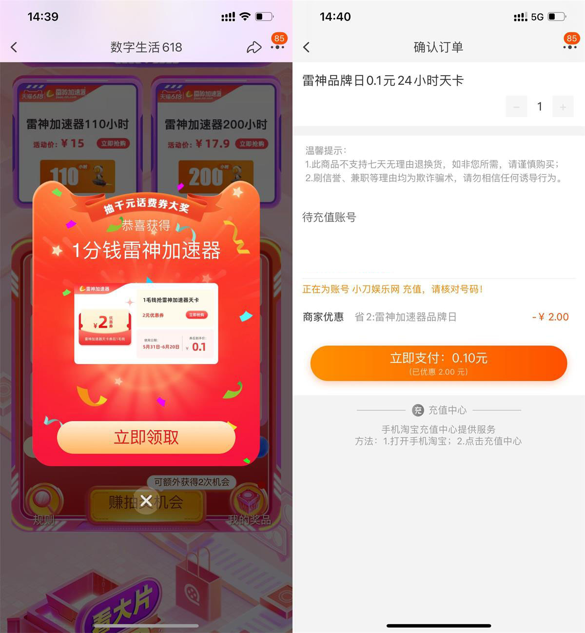 淘宝抽0.01元买雷神加速器天卡
