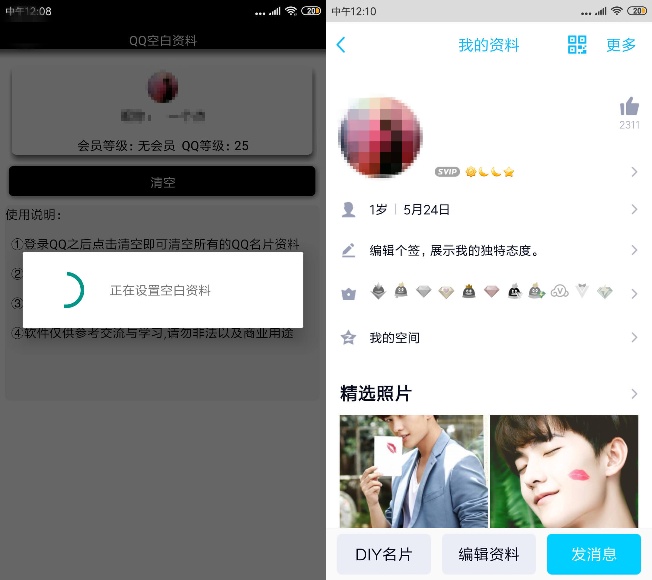 QQ个人资料越来越繁杂看着不舒服怎么办?用最新版QQ空白资料2.0APP,一键清空资料,还你一个简约清新的资料面板。