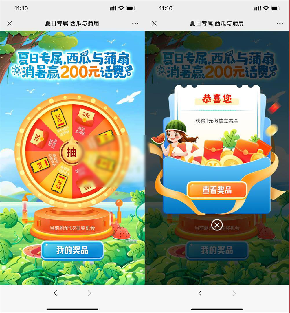 1、微信打开地址->点击“吃瓜降暑”玩游戏得次数->大转盘抽中立减金才有用