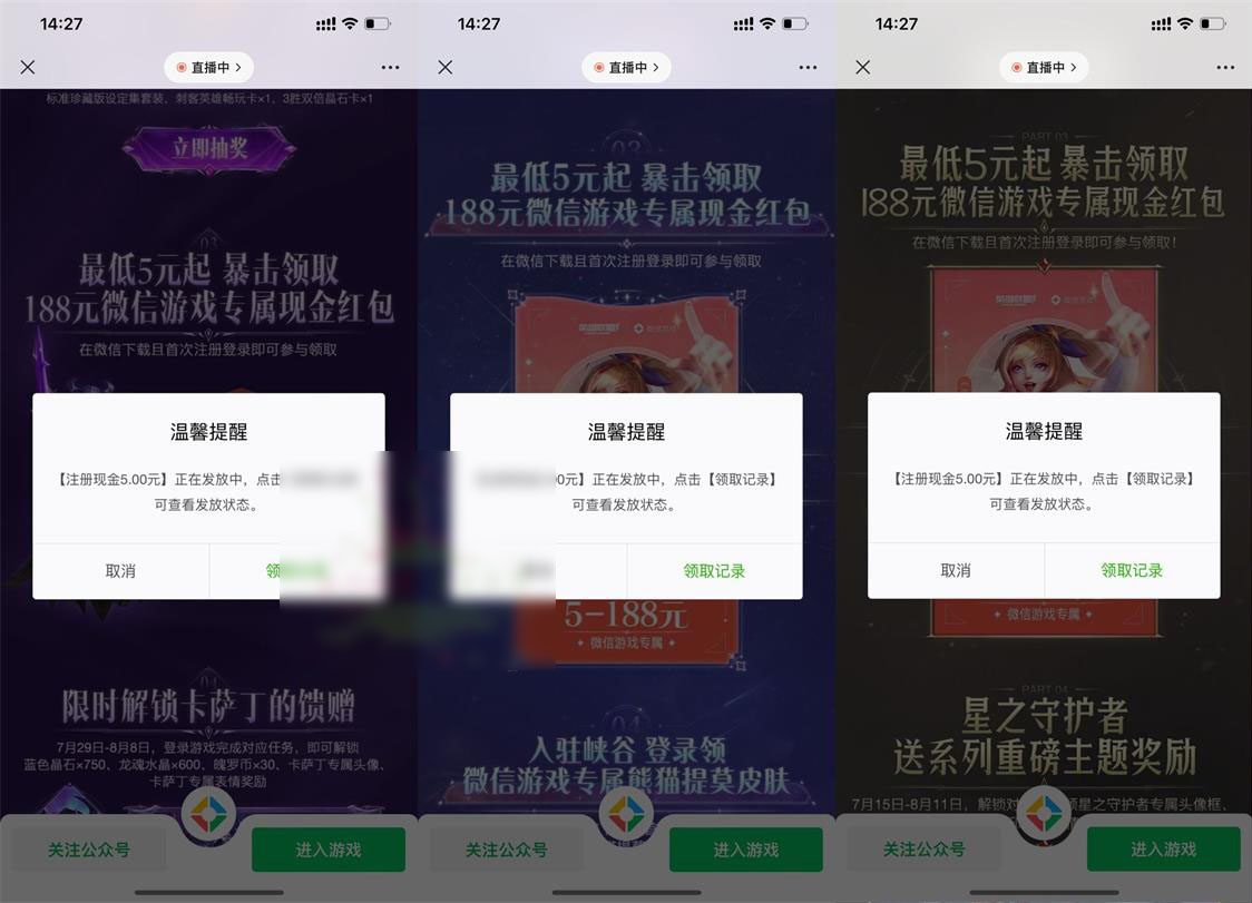 微信依次打开地址->下载登录游戏->设置昵称->返回下拉页面领取红包