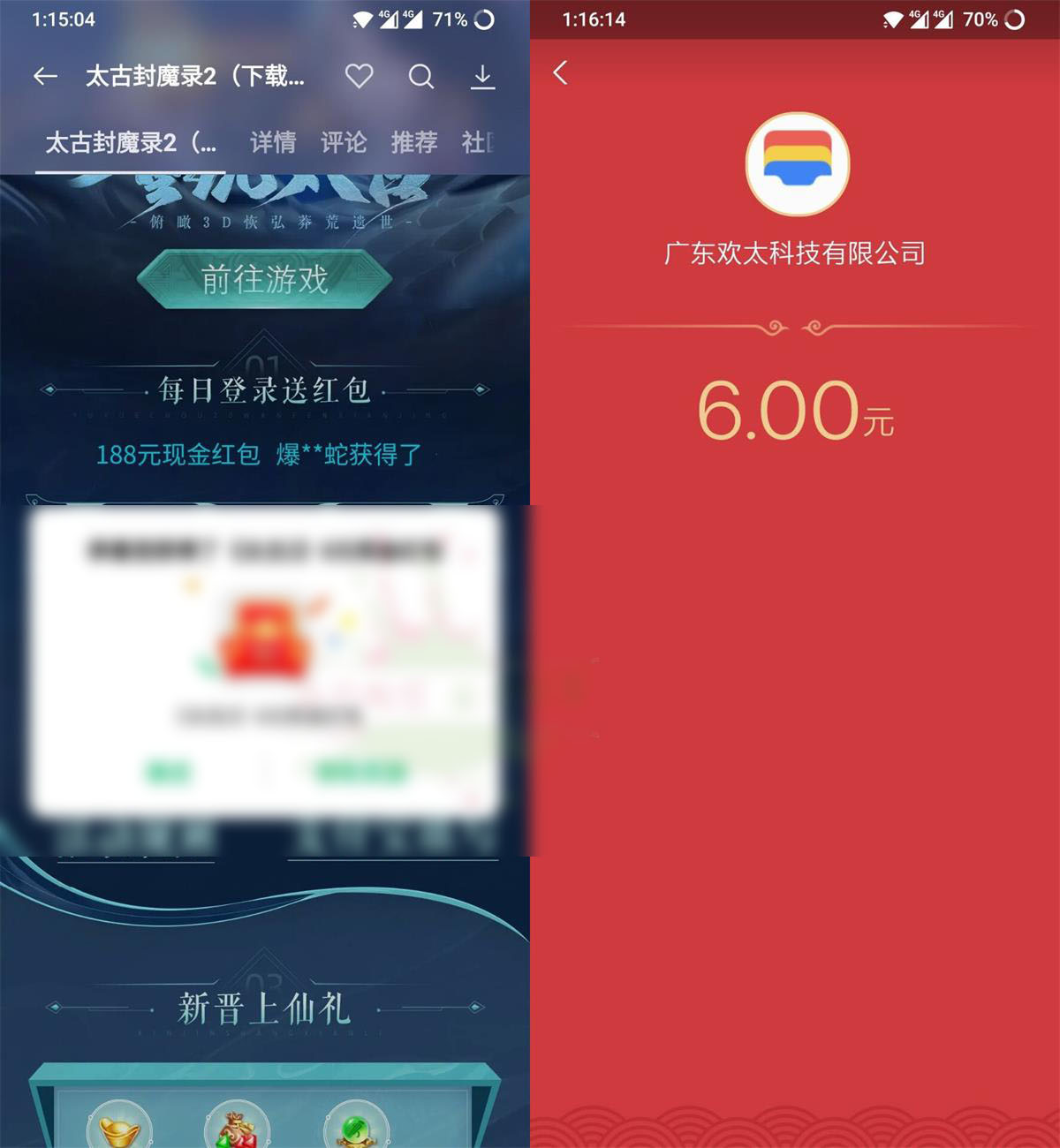 游戏中心搜索“太古封魔录2”->进入下载游戏得次数->必中1~6元红包->填写支付宝秒到