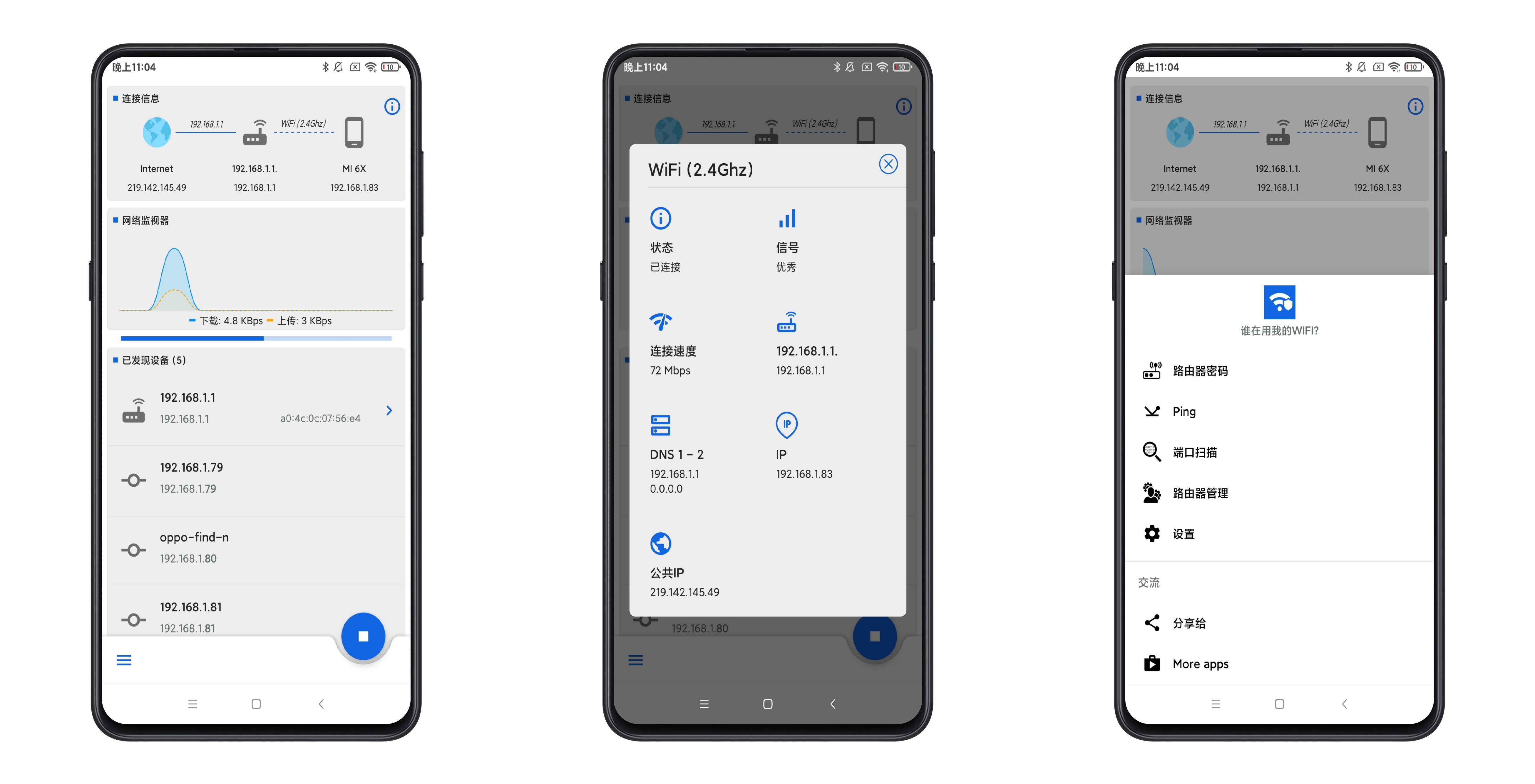一款一键扫描同wifi下所有连接设备的软件,快速监控本地环境有没有恶意的蹭网行为方便快速查询,软件小巧轻便不占用空间,是一款非常实用的小工具。