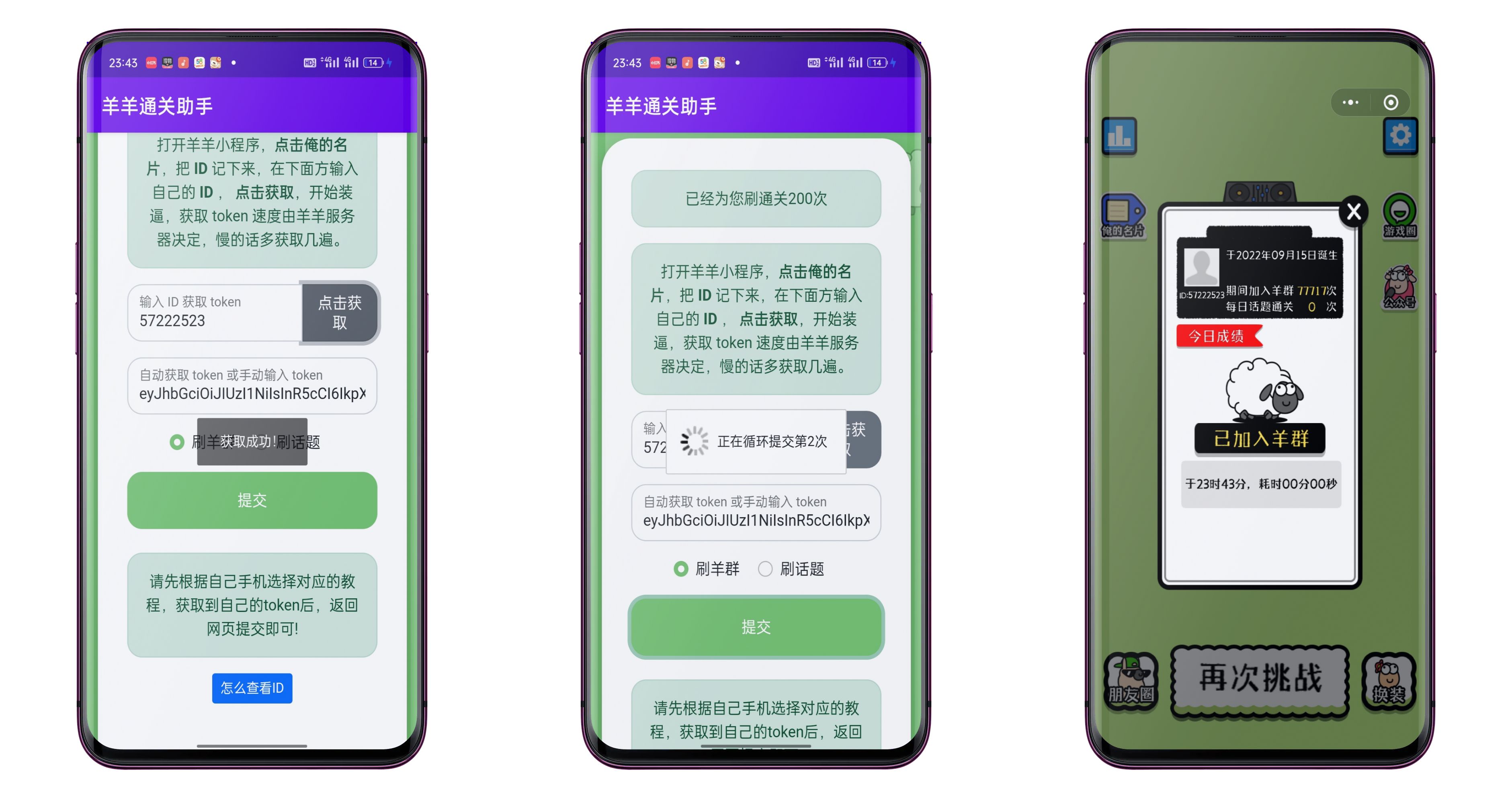 羊羊通关助手终极版,无需抓包,输入自己的id一键无限加羊群、话题次数,做朋友圈最靓的仔。