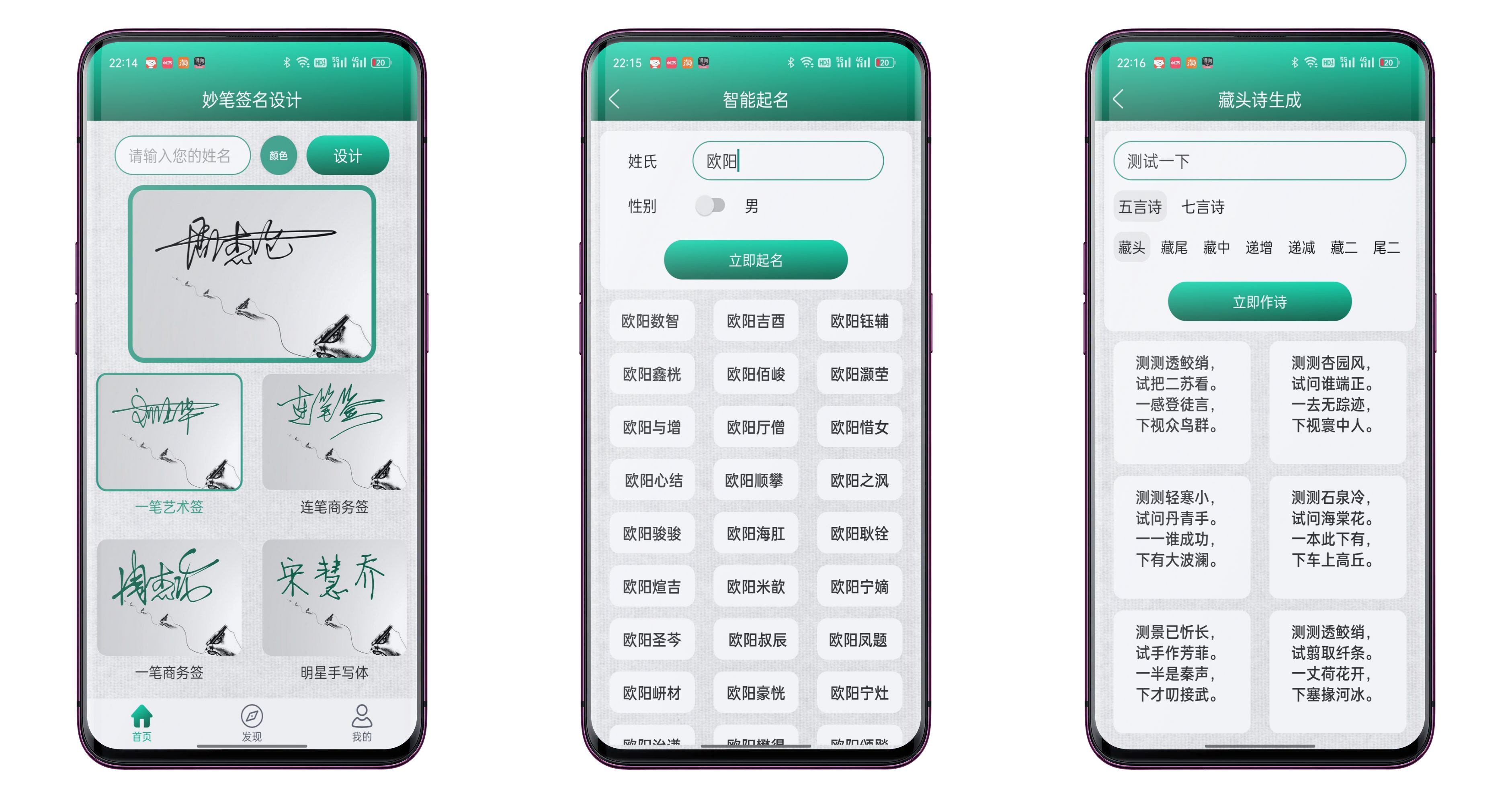 妙笔签名设计app是一款签名设计软件,里面有很多不同的字体可以使用,只需要输入想要设计的文字,就能自动生成签名字体,软件里面也有取名字,藏头诗等功能,有需要可以下载体验一下。