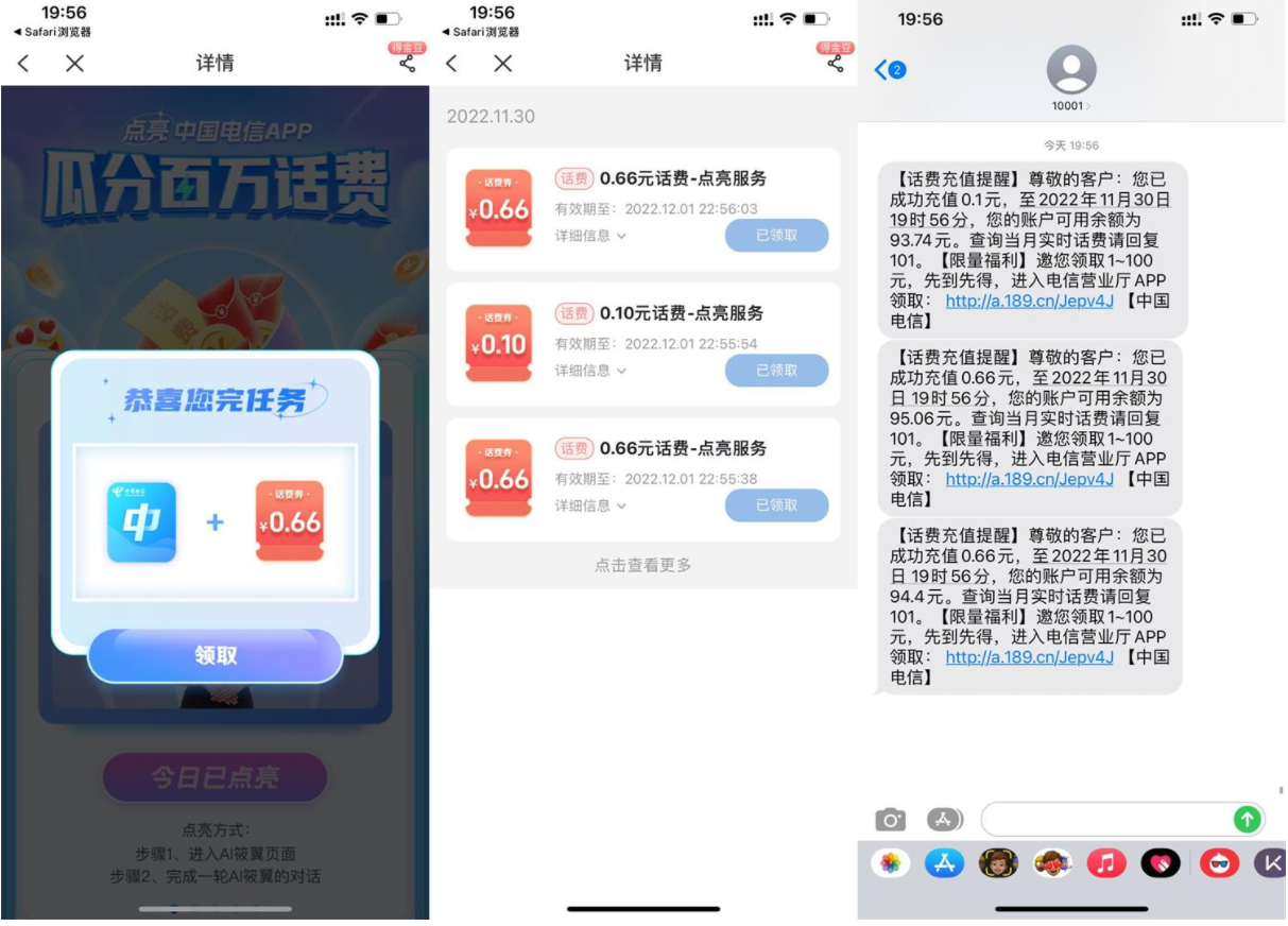 电信APP点亮卡片瓜分百万话费