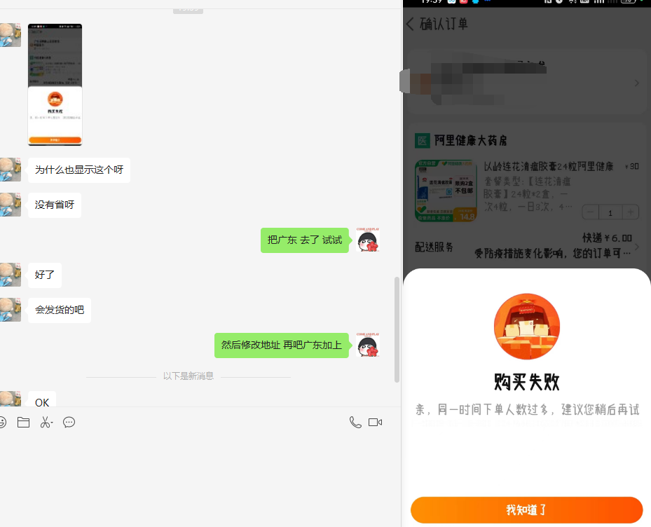 比如详细地址是:河南省xx市,你改成河南xx市,就可以下单了