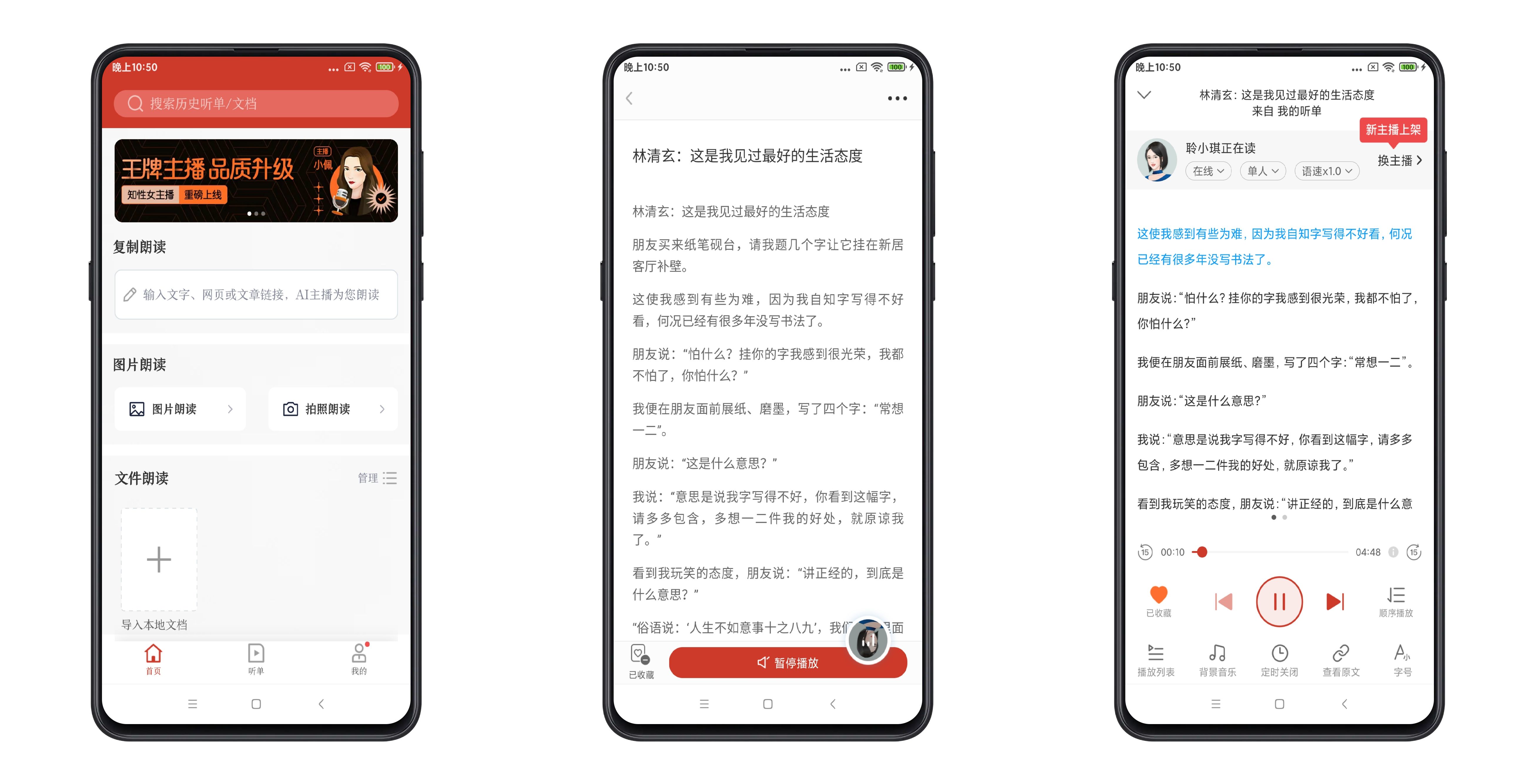 讯飞有声是一款帮助用户以“听”来获取信息的文字转语音朗读软件,由科大讯飞出品,现拥近百位A.I.主播,提供听网页、听文档、听文字、听图片、听书、听小说等多种格式的朗读功能,帮助管理碎片化时间,助力学习和娱乐。