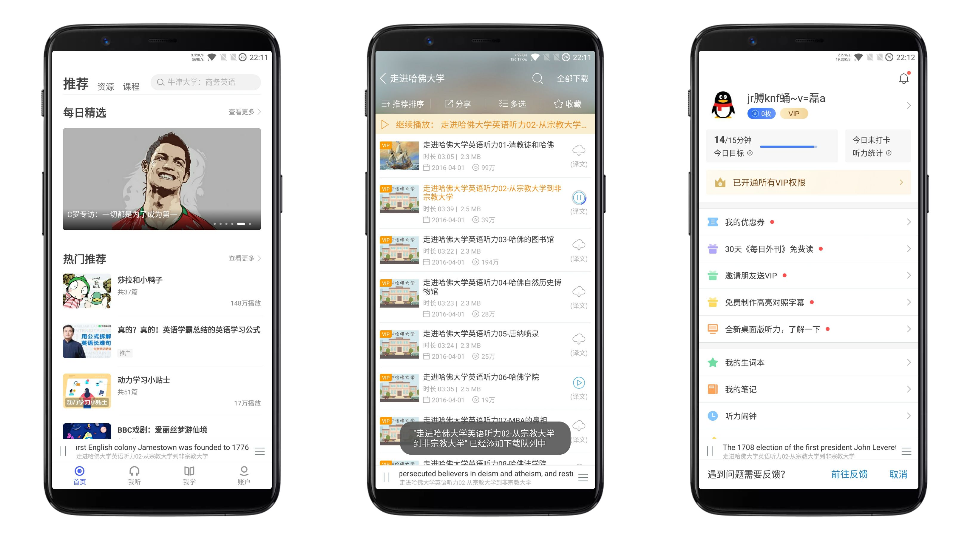 每日英语听力,专为英语学习者打造,软件会根据您的英语水平,每天推荐有趣的学习内容,《心灵奇旅》电影双语有声书、四六级资料......你需要的,这里都有。软件支持单句精听、跟读打分等多种训练模式,从现在开始,每天坚持十分钟,在家也能提高英语。有群友要最新每日英语听力 上个版本已经失效了。用我们的最新版本就可以了,无需登录就是VIP可以无限下载缓存,享受VIP特权。