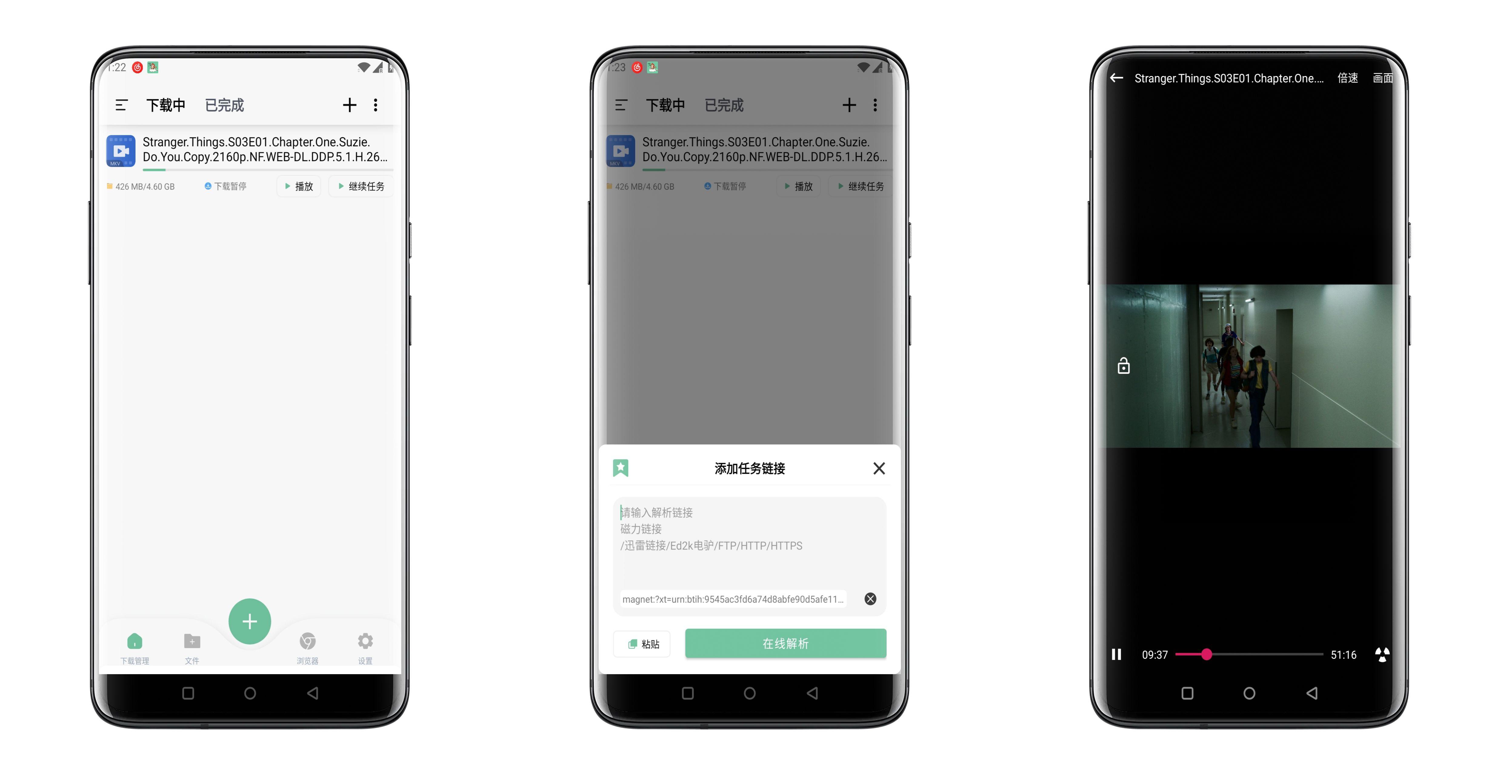悟空下载app支持磁力链、迅雷链接、Ed2k 电驴、FTP、HTTP 多种下载链接,不限速、无广告,还可以边下边播,用起来非常舒服,比手机迅雷好用 100 倍。