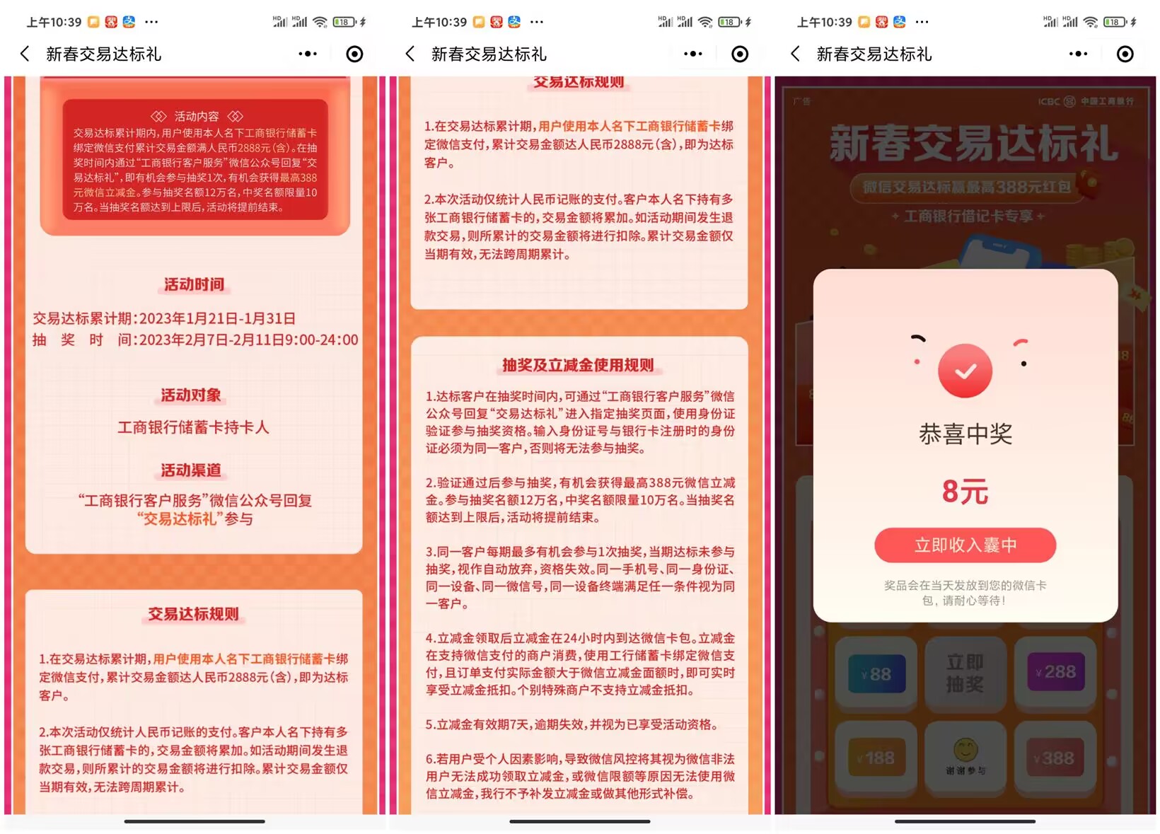 工行新春交易达标礼抽立减金