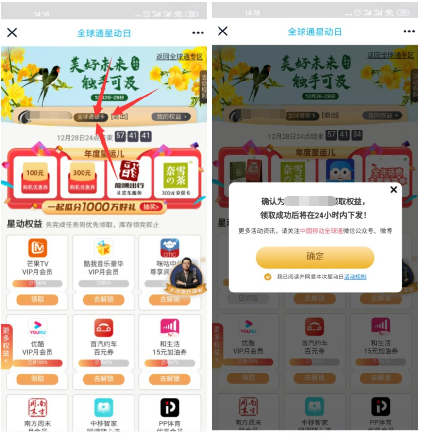 不是每个移动都可以,反正移动都去试试!打开地址->下拉页面->爱奇艺+优酷页面每个全部领取